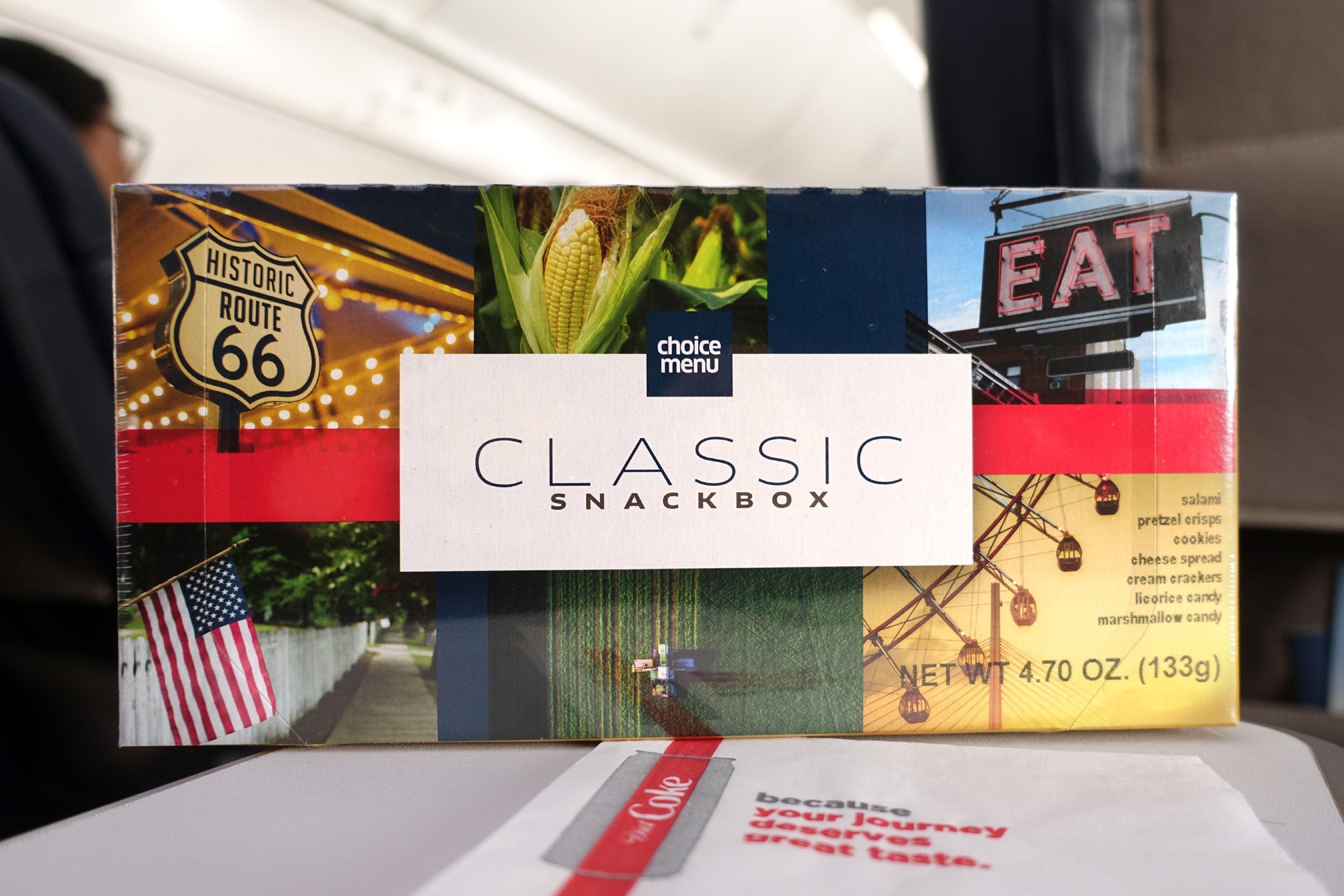 Since this was a short flight and meals weren't on offer, I requested a Classic snack box, which came along with the goodies below.