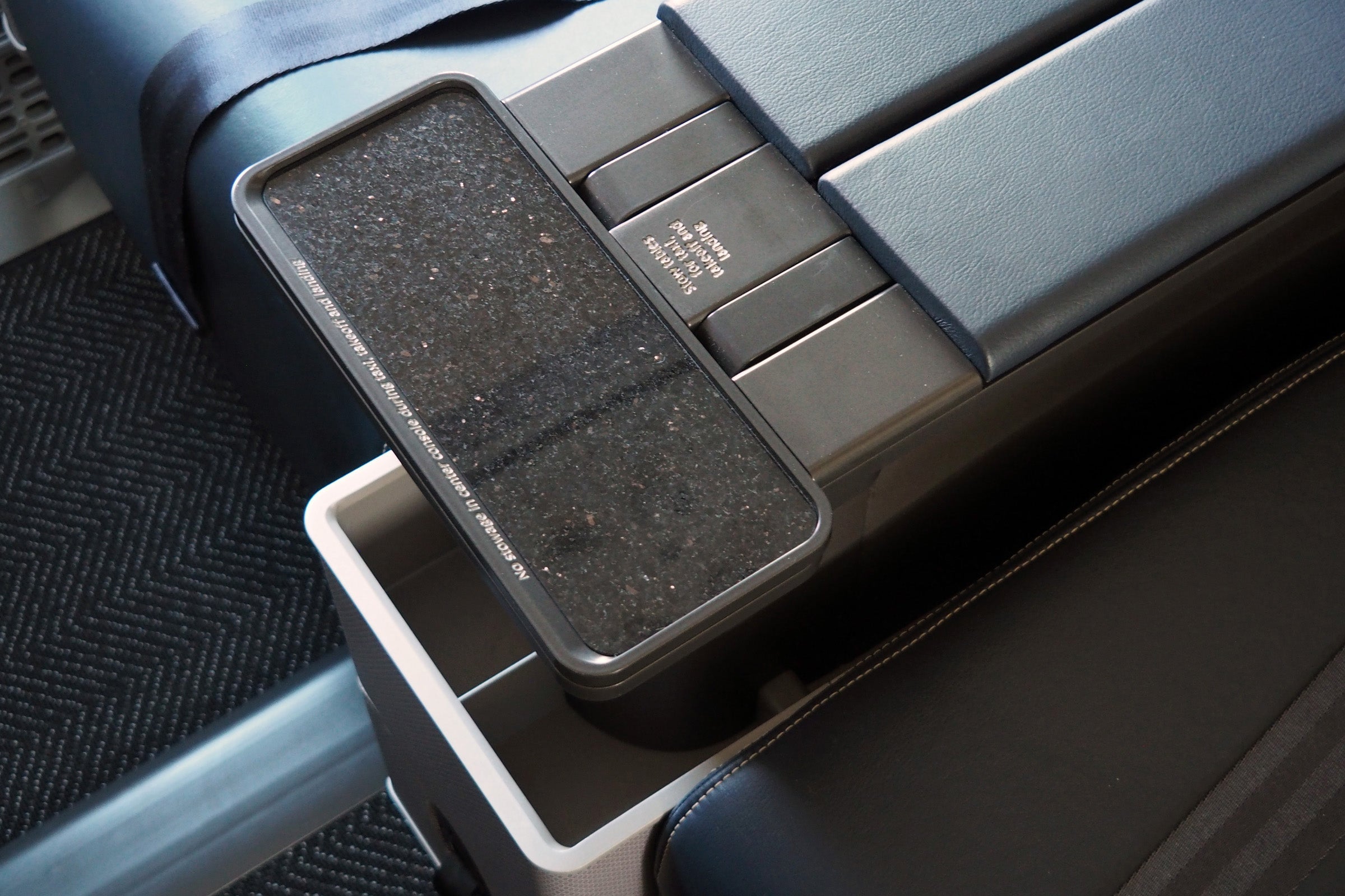There's also a marble drink platform, a pop-out tray table, storage compartments and universal power outlets at each seat.
