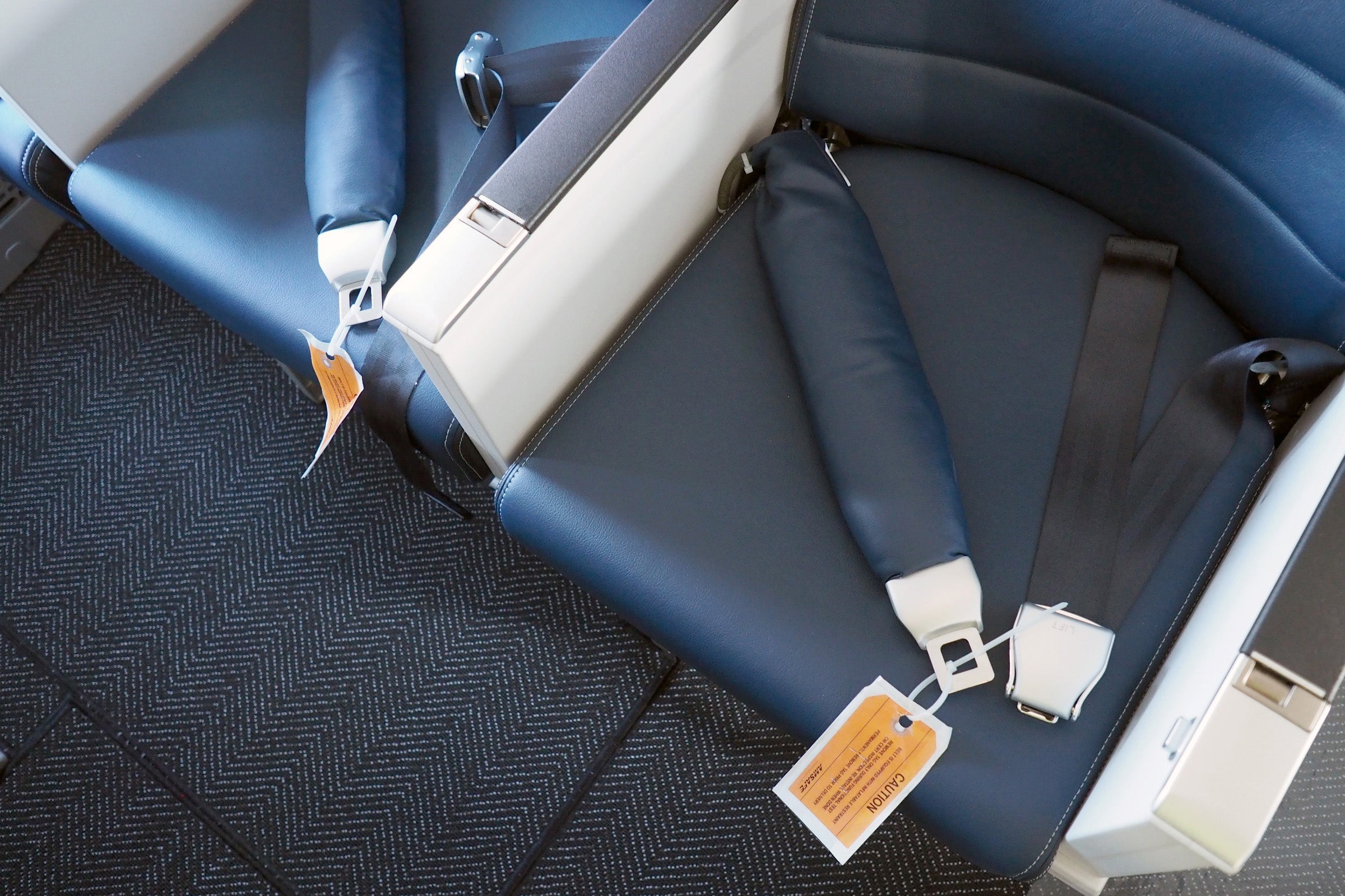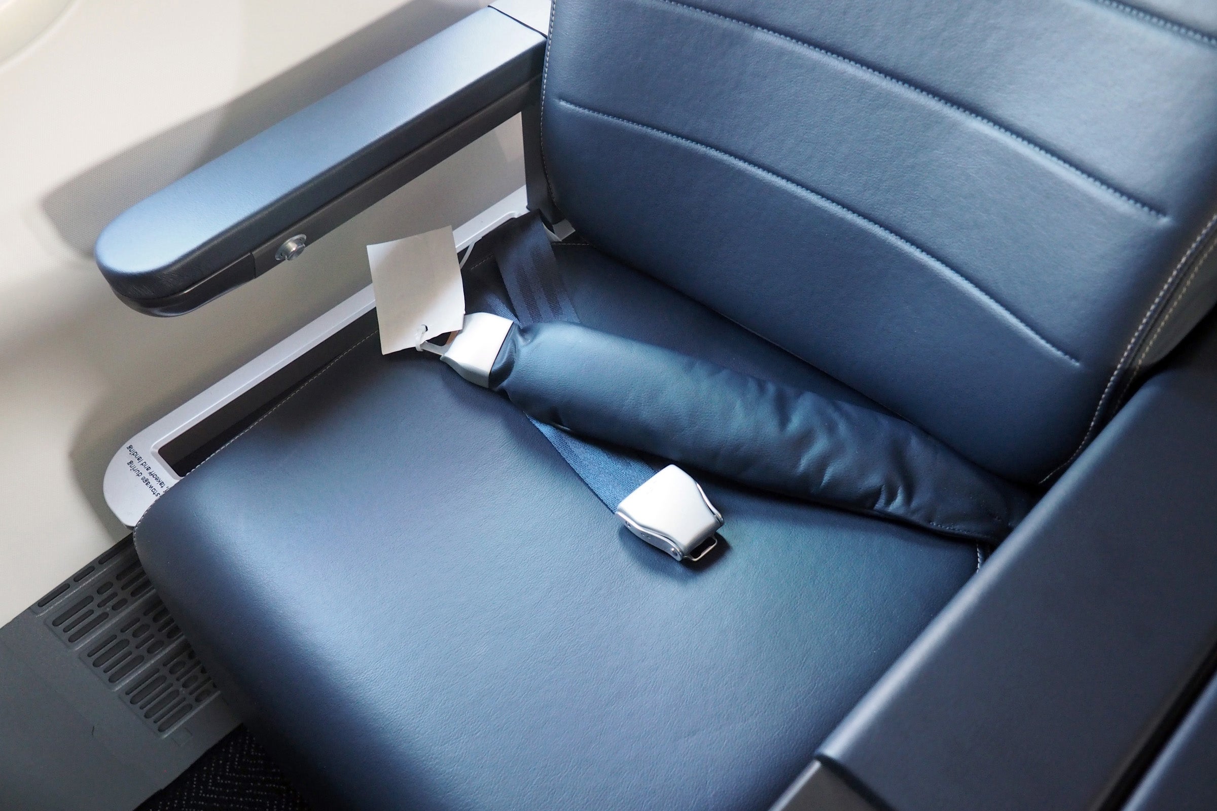 There is one thing I really don't like about this version of the new seat, though. United opted to add airbags at the bulkhead seats — while you'll have a bit more legroom in Row 1, I'd rather pick a seat farther back to avoid having to deal with a bulky airbag during the entire flight.