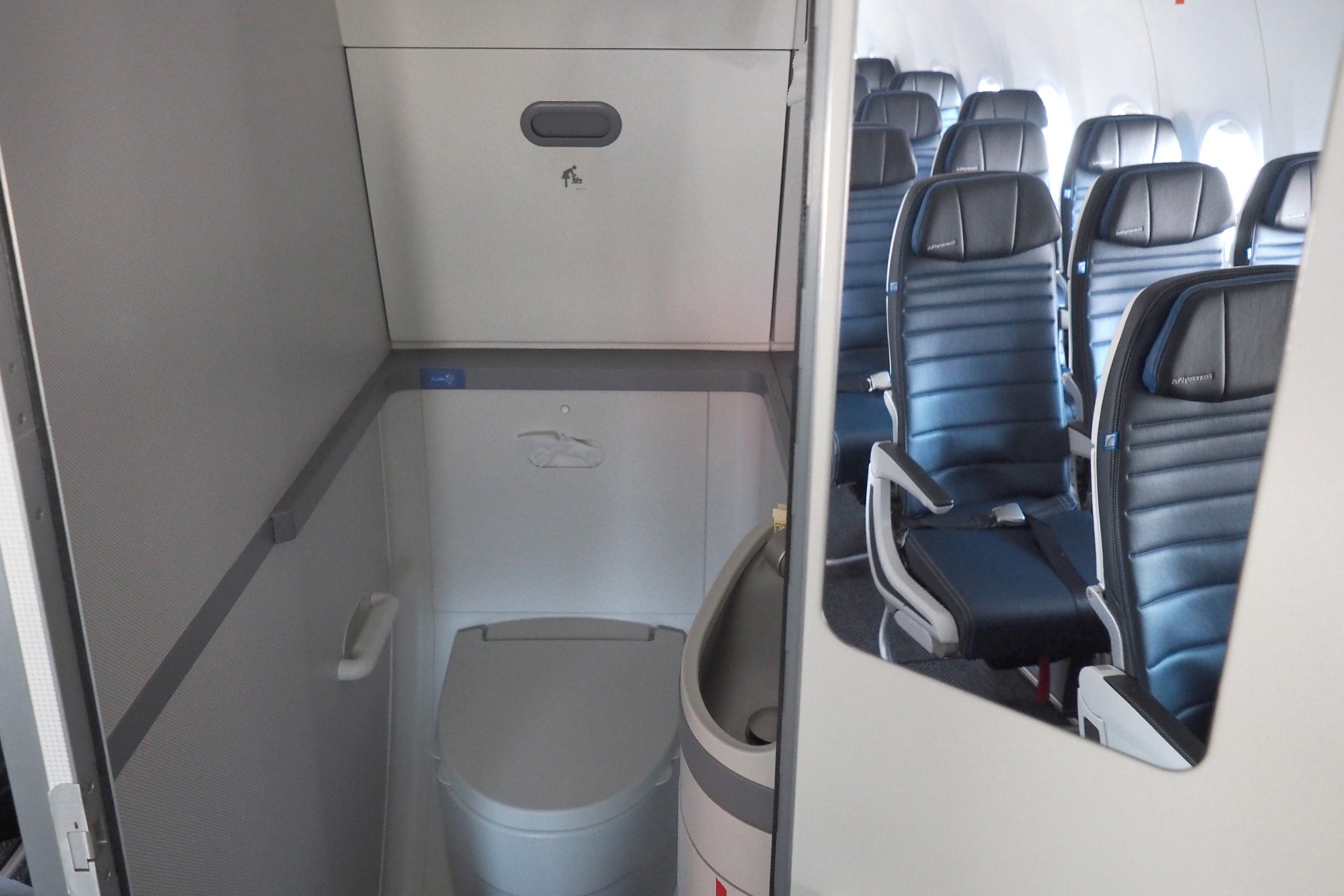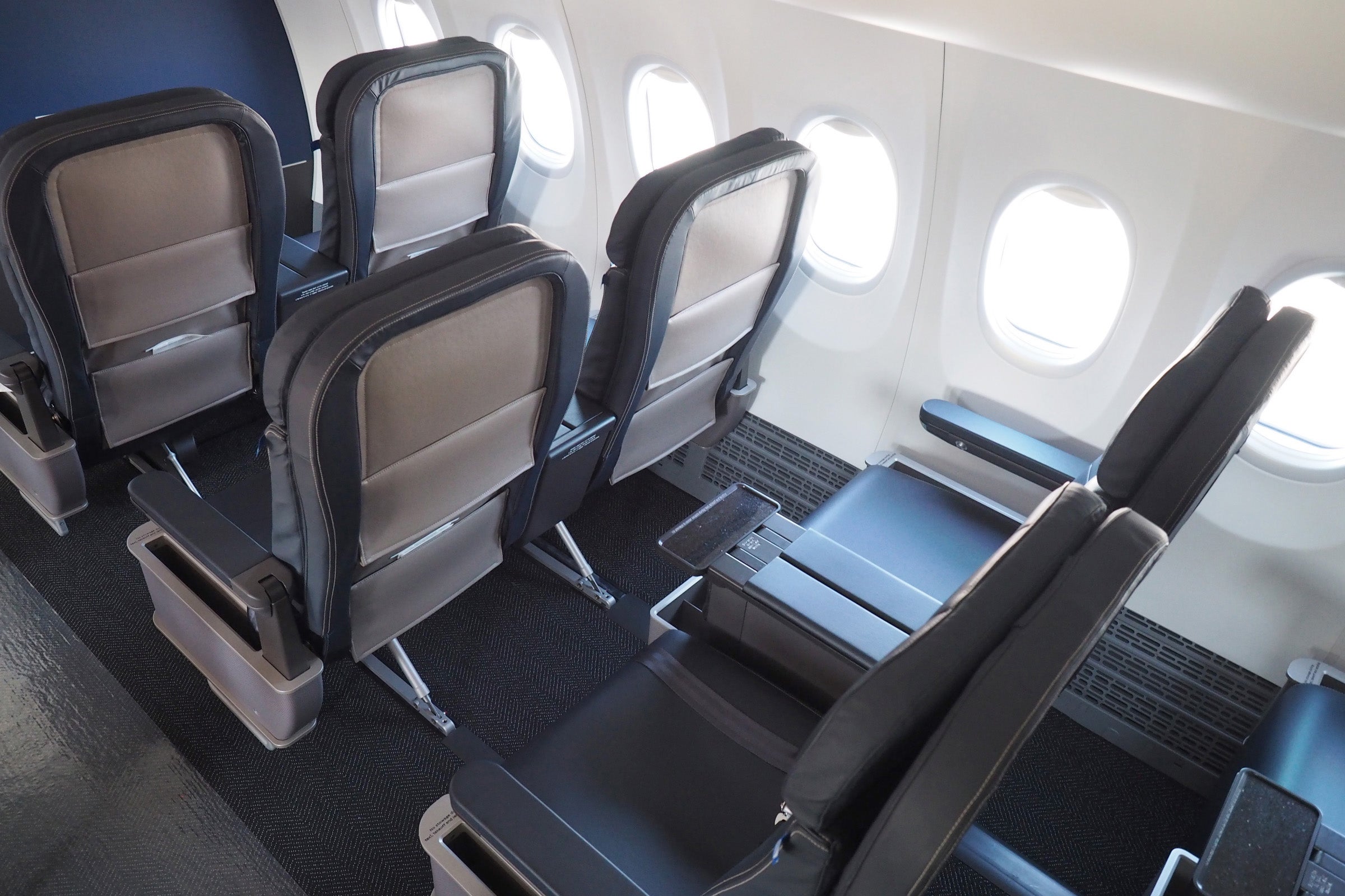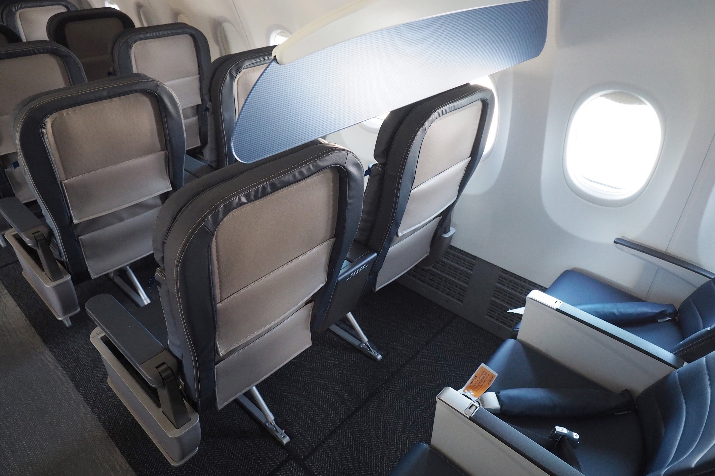 As a result, passengers in the first row of economy on this plane actually have under-seat storage, which is a huge plus. It also enables first-class passengers seated in that row to recline a bit more than they otherwise would be able to with a bulkhead just behind.