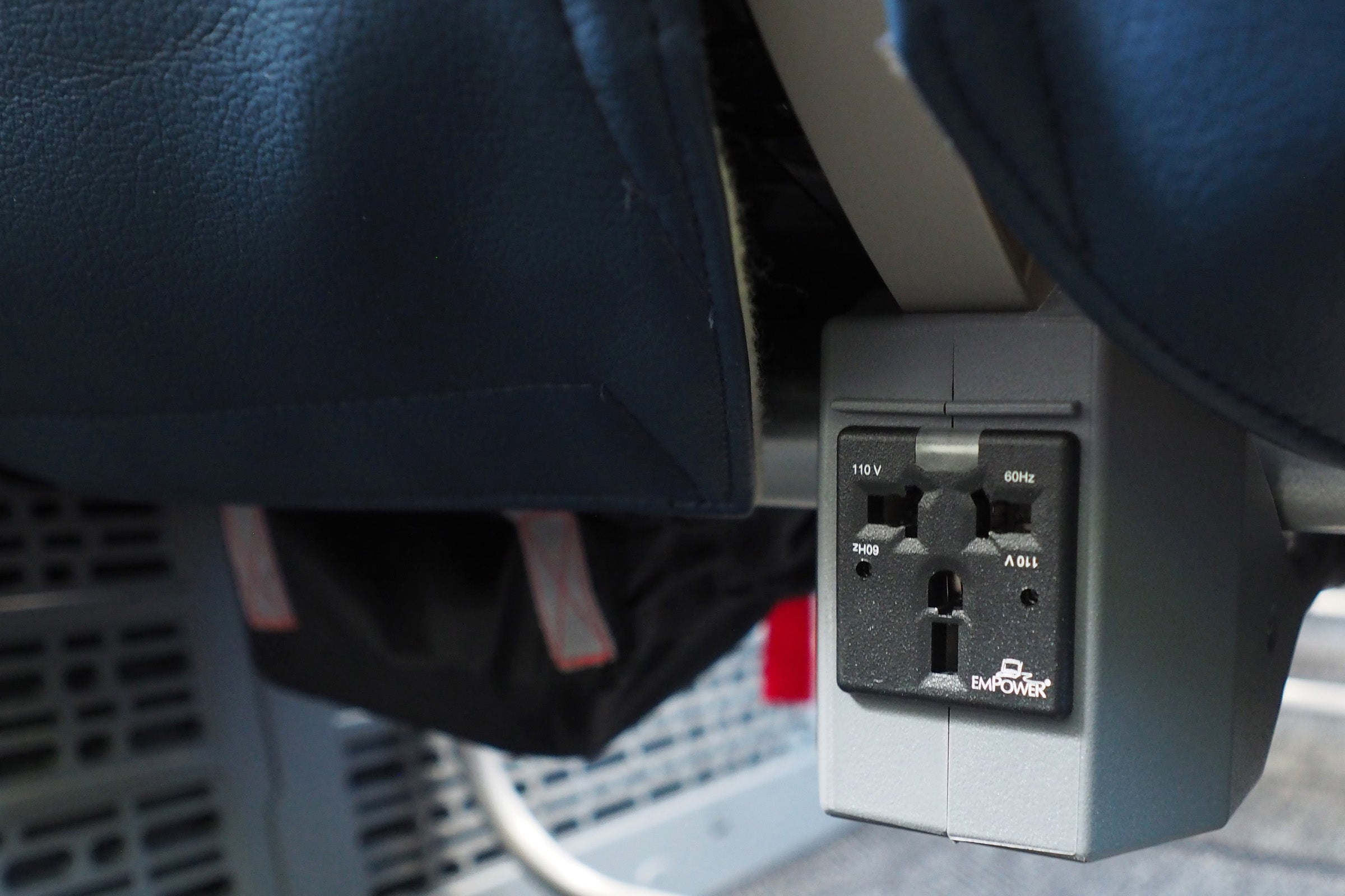 There's also a universal power outlet — two for each row in economy, and one at every seat in first class.