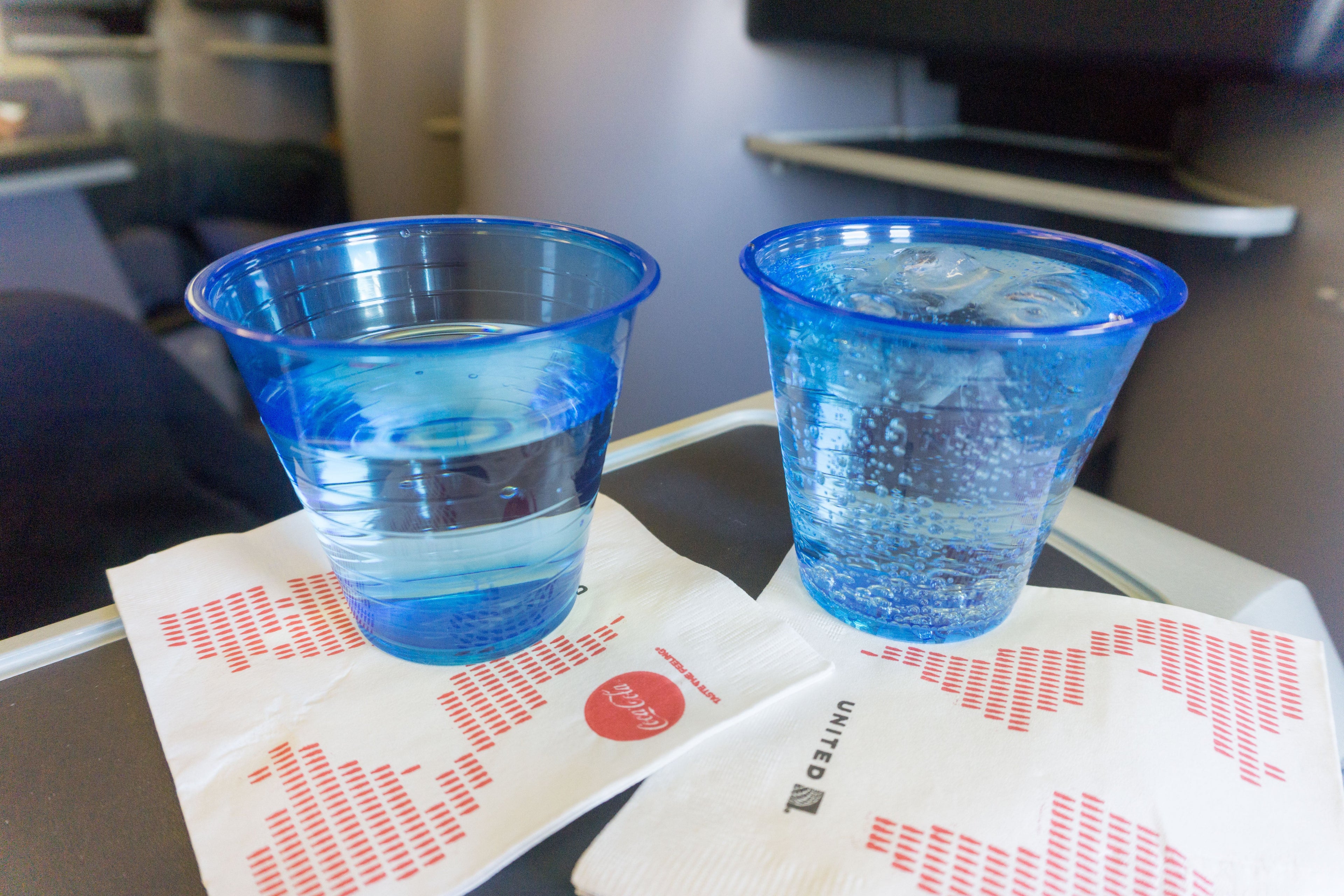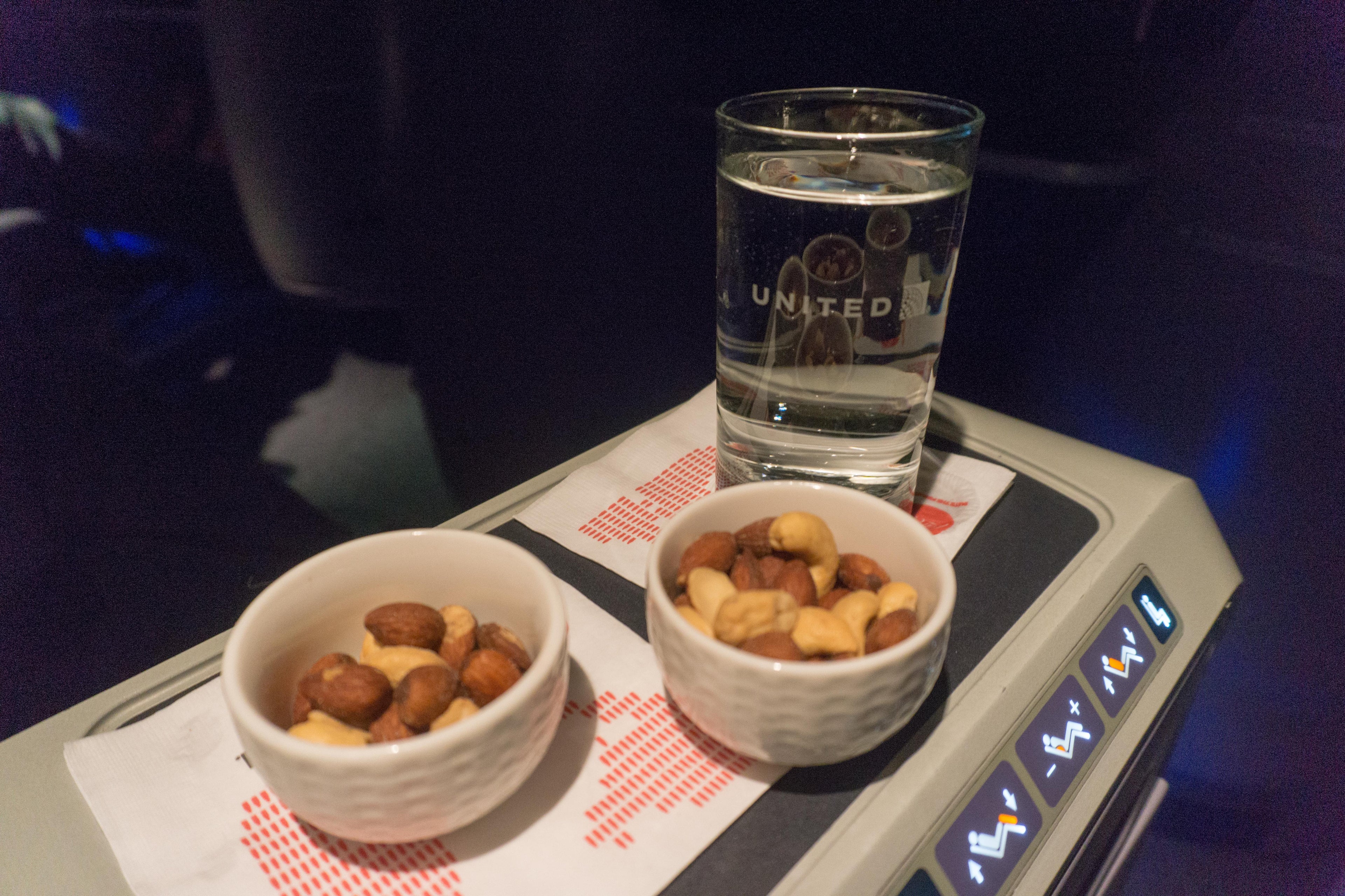 Once we boarded the aircraft and got settled into our seats, the flight attendant promptly came by to take our welcome drink order. I just went with sparkling water.