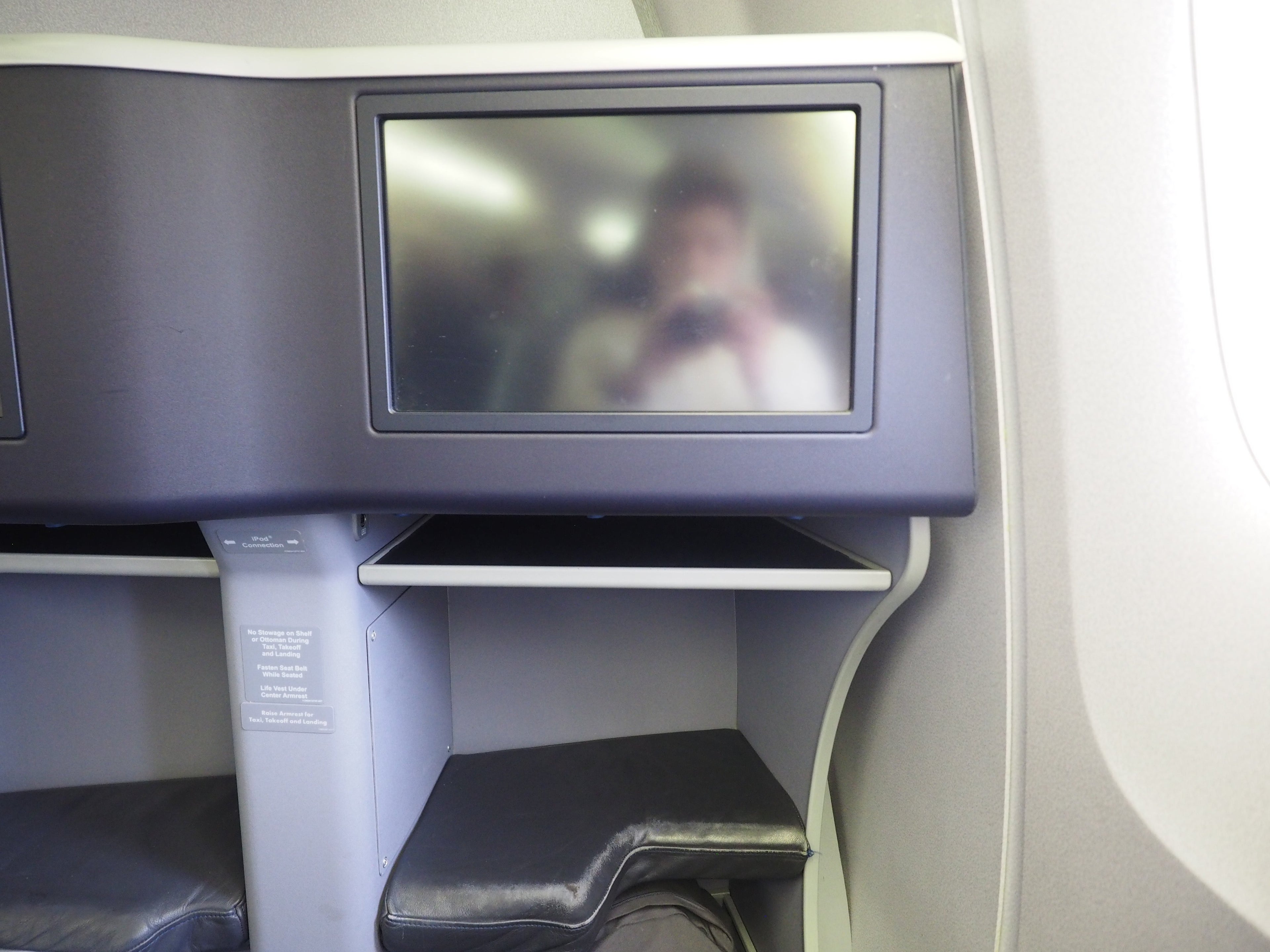As I took my seat, I noticed more storage space than I expected on the inside of the seat, along with individually wrapped headphones, an amenity kit, a universal power plug, headphone jack and USB charging port. .