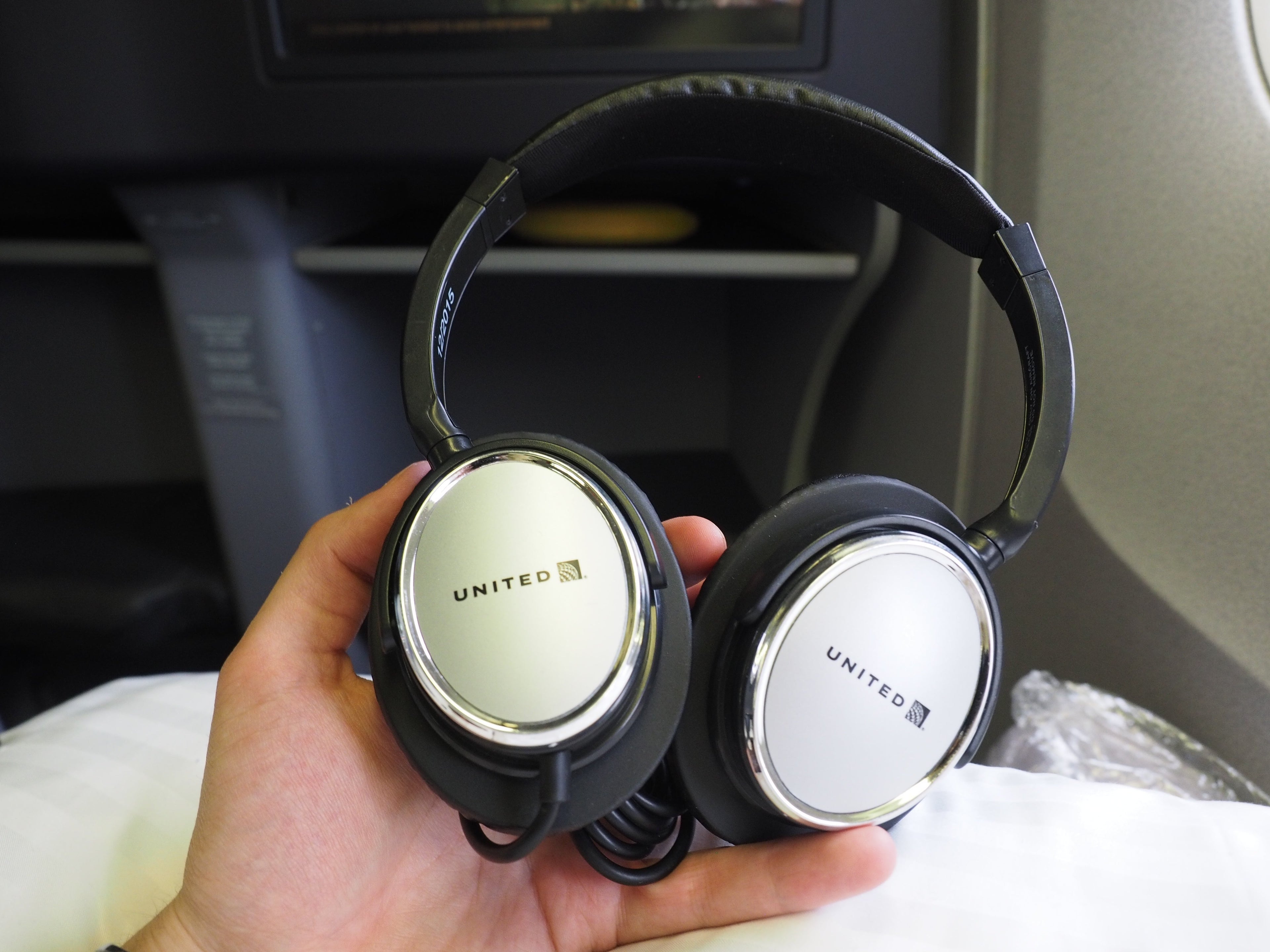 United provided a noise-canceling headset for all business passengers, and you could use this set from gate to gate (unlike, say, American, which offers higher-quality Bose headphones but collects them before arrival). United's double-pronged headphones far exceeded many shoddy economy-class headsets but weren't spectacular by any stretch of the imagination.