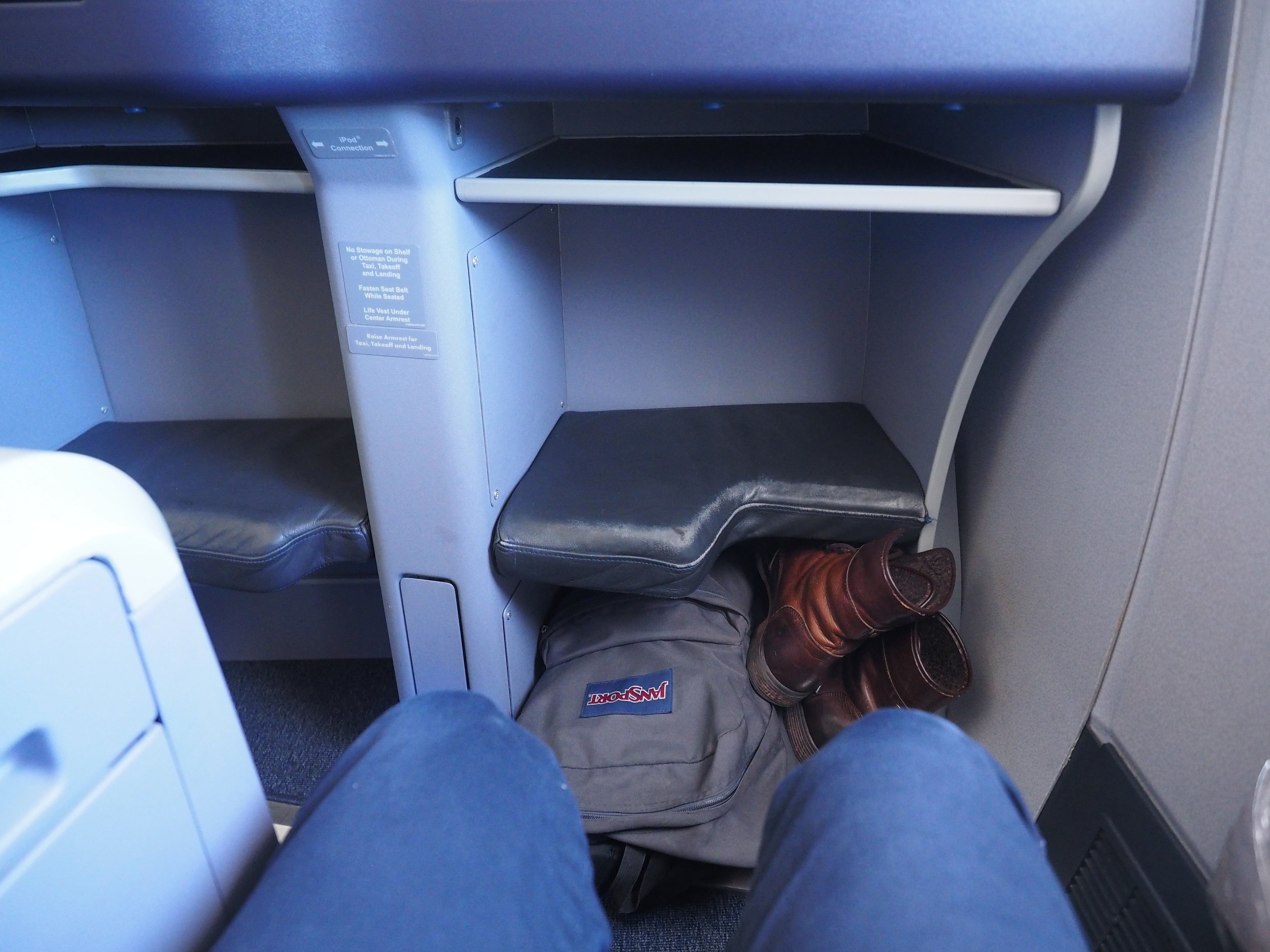 Another advantage to the bulkhead: a large footrest. Many airlines, including United, offer much larger footrests in the bulkhead rows of business class. In fact, Row 1's footwells appeared to be nearly twice as large in the other rows.