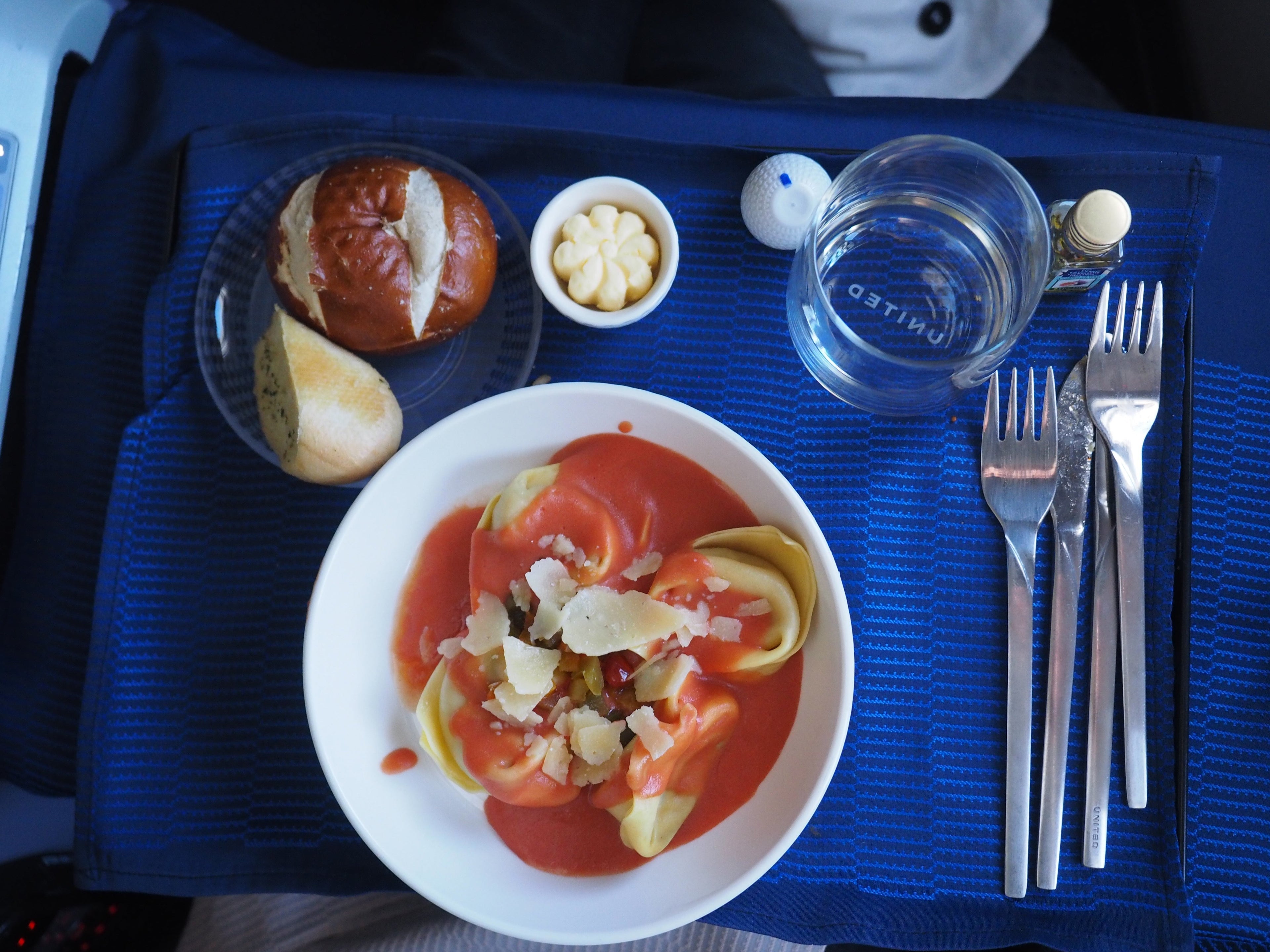The tortellini, on the other hand, was weaker. It tasted like airplane pasta: reheated, and the sauce had a sort of ketchup-y look. I wish I'd gotten the braised beef that my seatmate seemed to enjoy immensely.