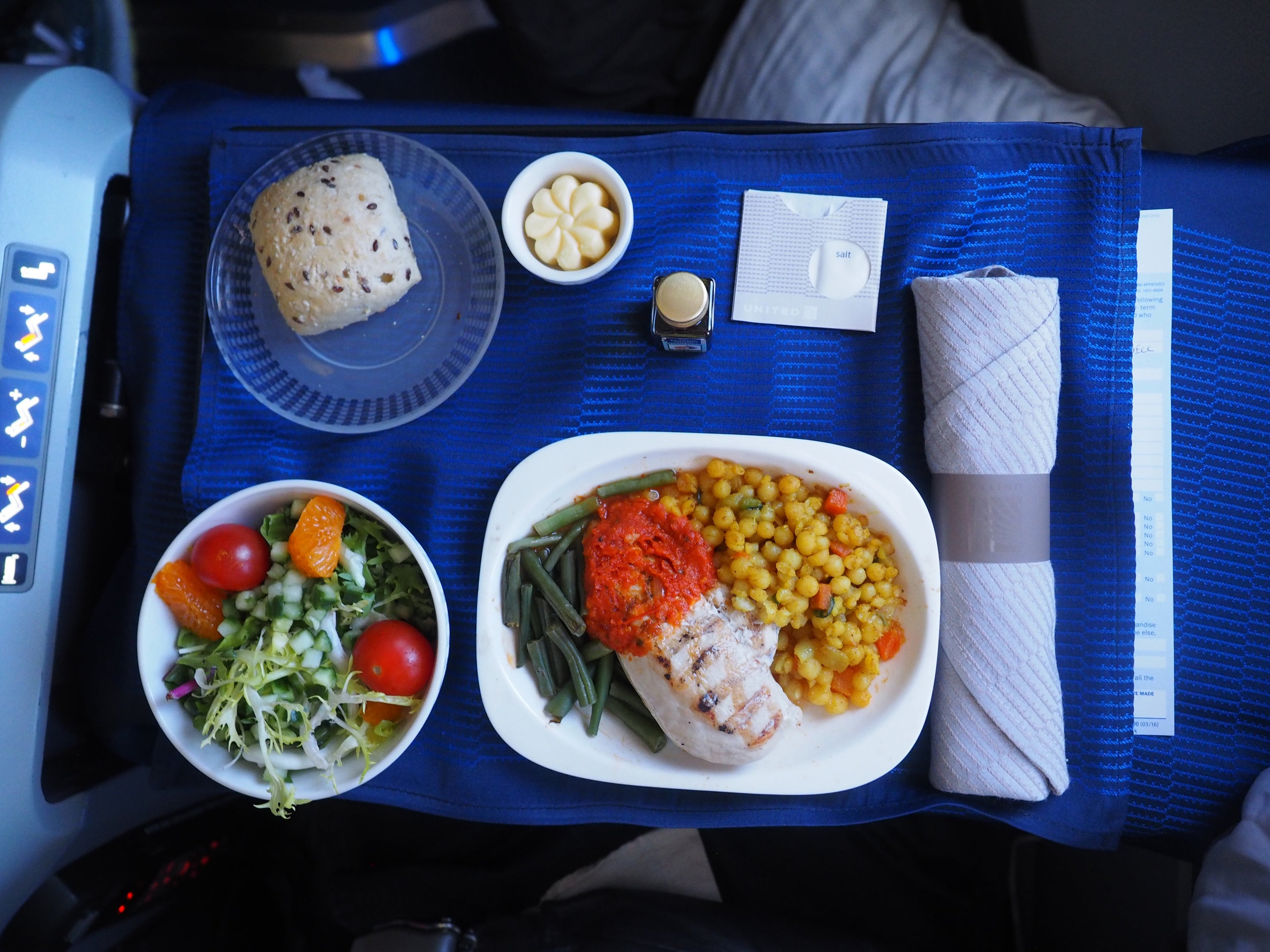 Upon waking up with just about an hour left of the flight, I requested a cup of hot tea, and my second lunch arrived. For this meal, I went with the chicken over a cheese plate. The meat was a little bland, but the salad and couscous were delicious.