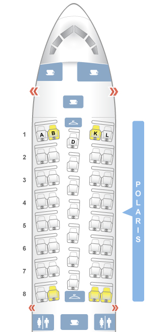 This 767-400ER featured 39 Polaris business-class seats, each capable of going fully flat. Behind the business cabin were 70 economy-plus seats and another 133 standard United economy seats.