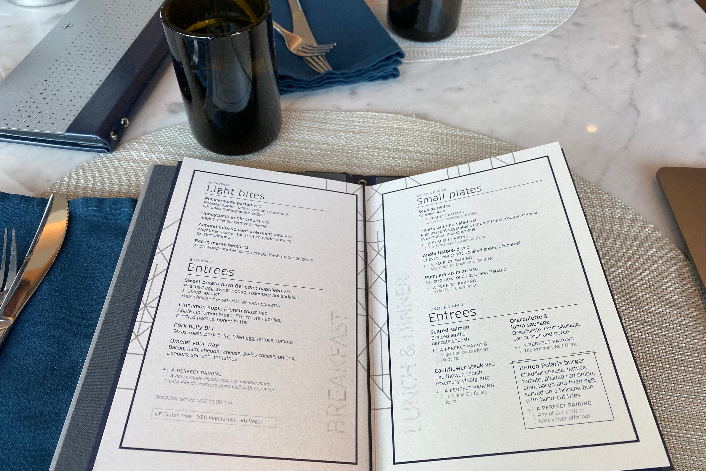 Arguably, the best Polaris lounge perk is the dining room, which offers waiter service and a reasonably robust menu, with different dishes for breakfast and lunch/dinner.