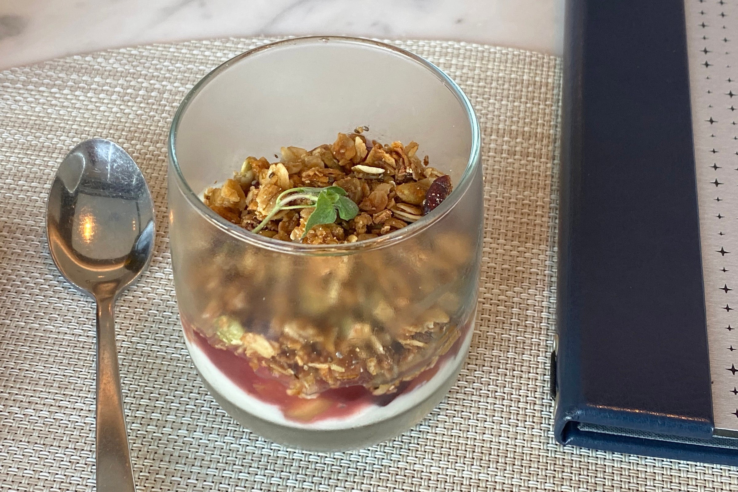 First, I tried the pomegranate parfait. I liked the flavor, but the granola was a bit soggy, as if the whole dish had been premade and refrigerated.