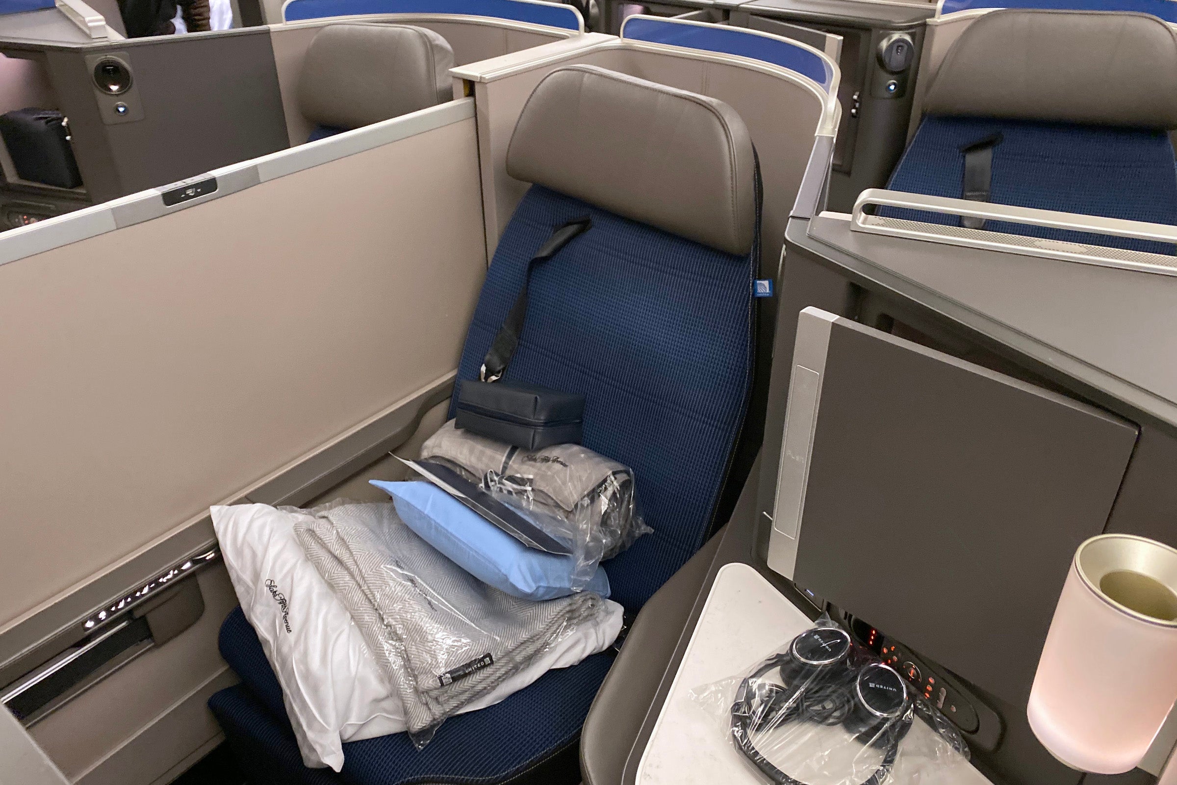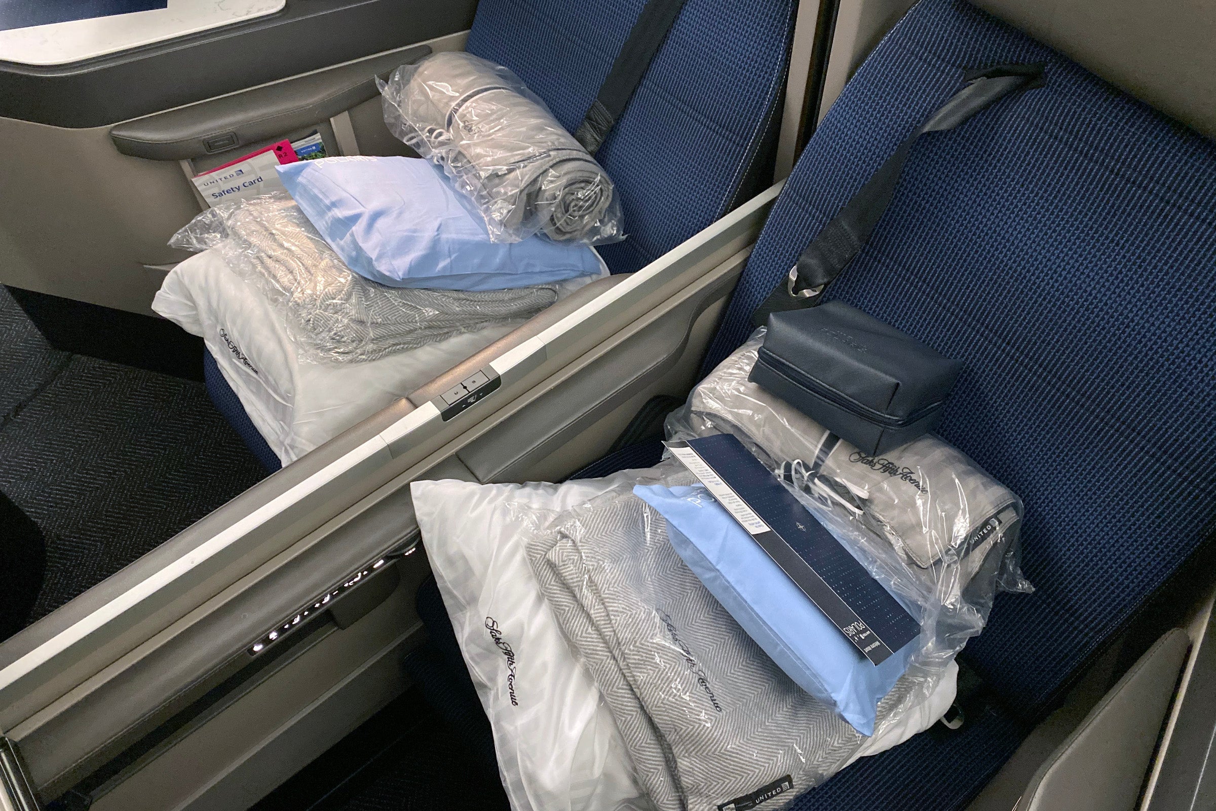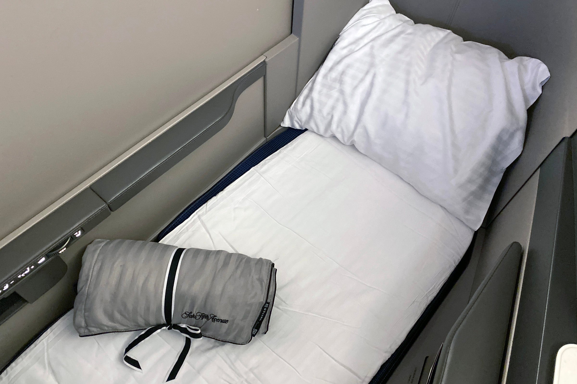 United's bedding is the best I've had in business class, too — the pillow is large and fantastic, and the Saks Fifth Avenue duvet is comfortable but not too heavy, so you don't overheat as you sleep.