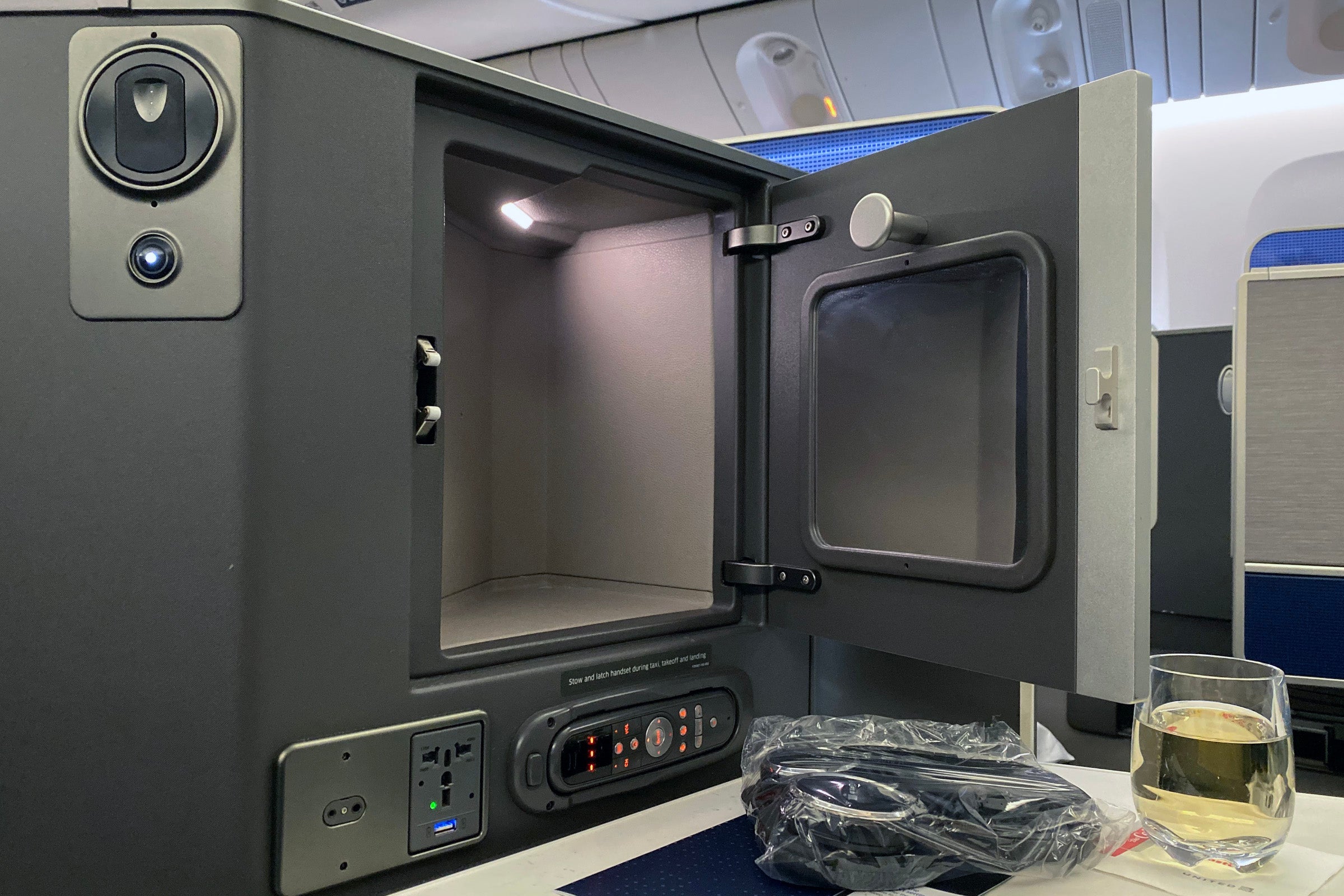 In-seat storage was fairly limited: There was a compartment underneath the footwell, which could be used to store shoes or a small bag, along with an enclosed storage area just above the side table.