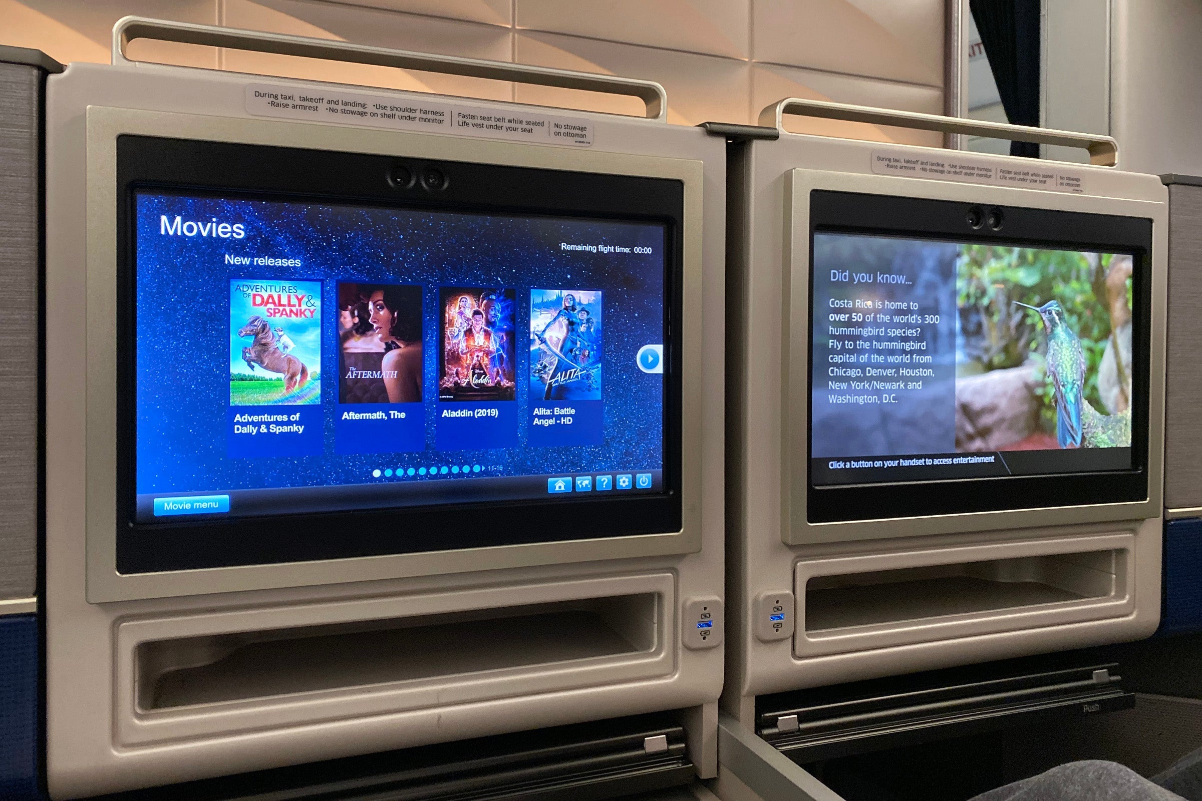 United also offers a great selection of movies and TV shows, accessible via the 16-inch display.