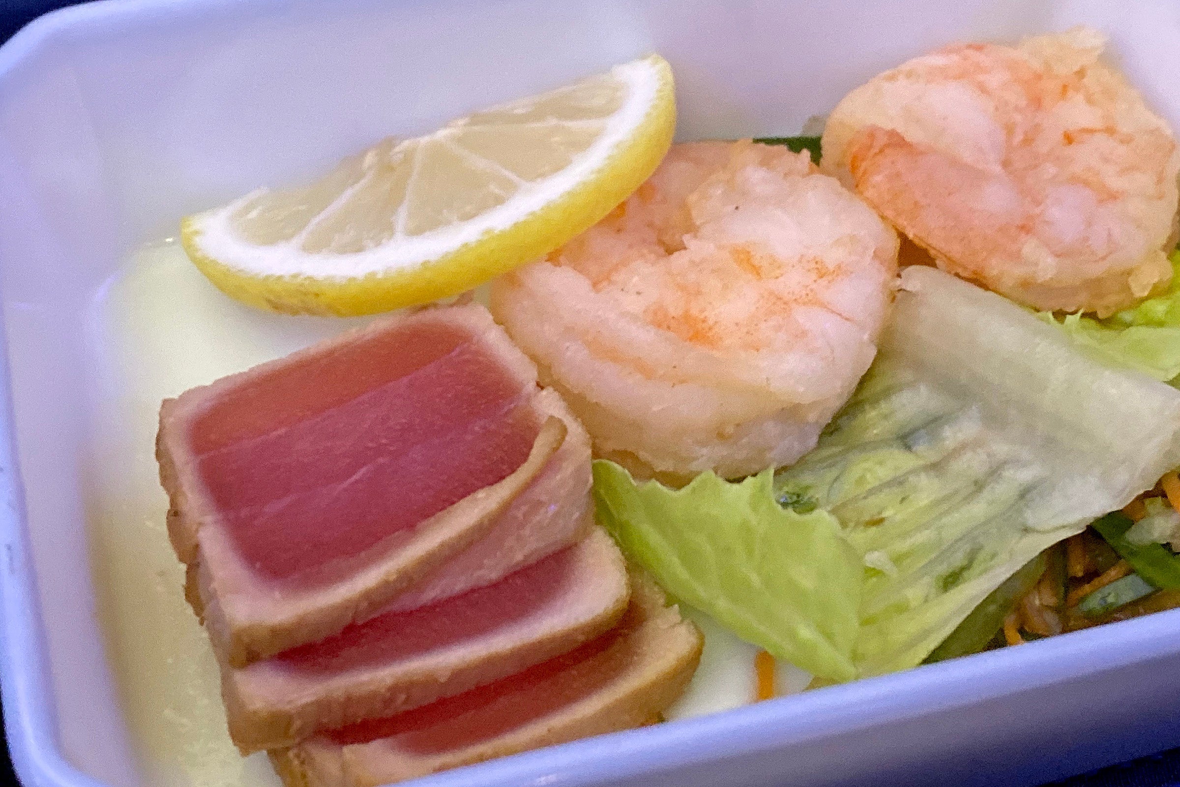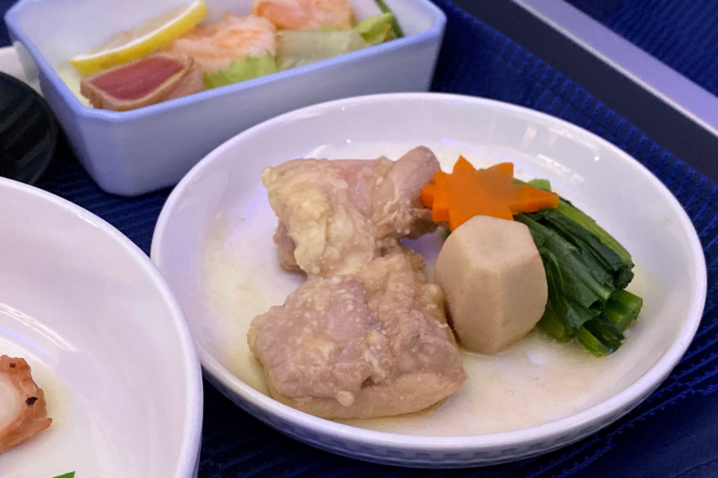 Japanese meals were in very short supply as well, but we had placed our order in advance — you can select a Japanese meal at least 24 hours prior to departure on your reservation page on United.com. My appetizer spread arrived just under an hour after takeoff.