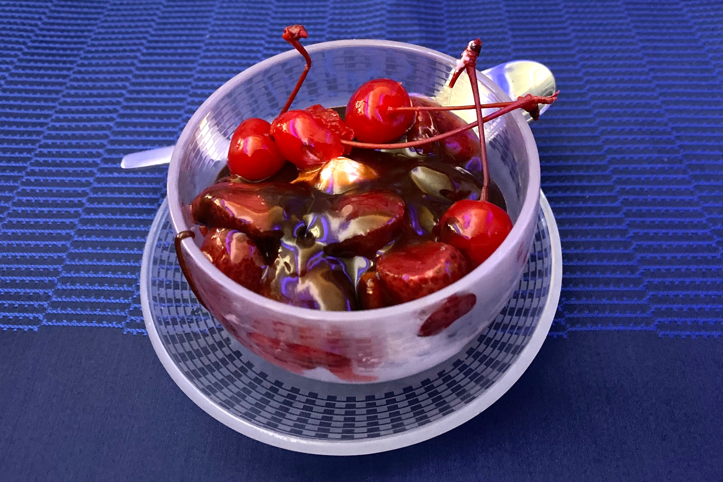 Finally, about 40 minutes after that, it was time for dessert. I decided to be indulgent and went with a sundae with strawberries, cherries and hot fudge. It was just as delicious as it looked!