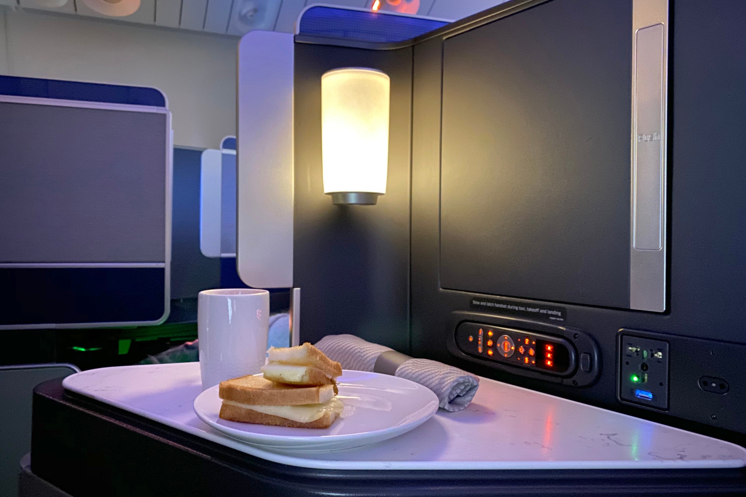 You could also order warm snacks from the crew, including grilled cheese with tomato soup, which my friend enjoyed — several times.