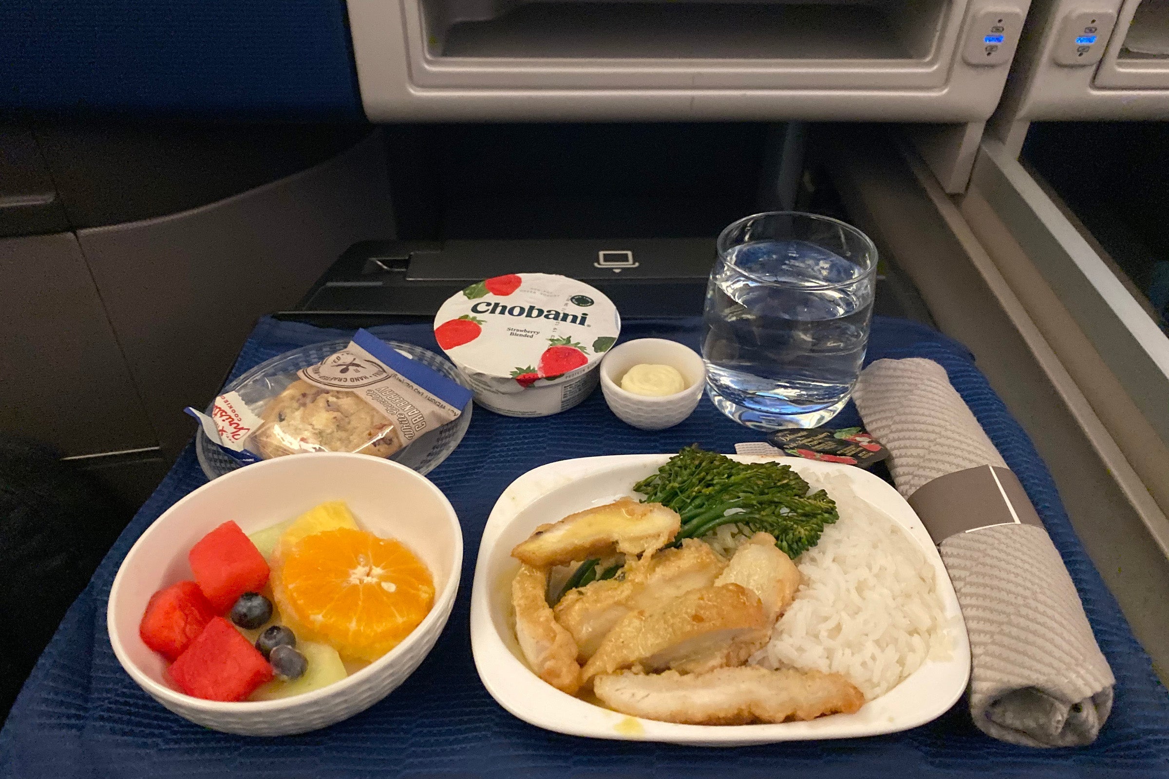 [flight_stats ticket-class="first" review-stat-section="Food and Beverage" tpg-rating="10" tpg-rating-max="20" live-tv="0" tailcam="0" headphones="0" meals="2" dine-on-demand="No" comp-alcohol="0" extra-pillows="0" turndown-service="0" /]