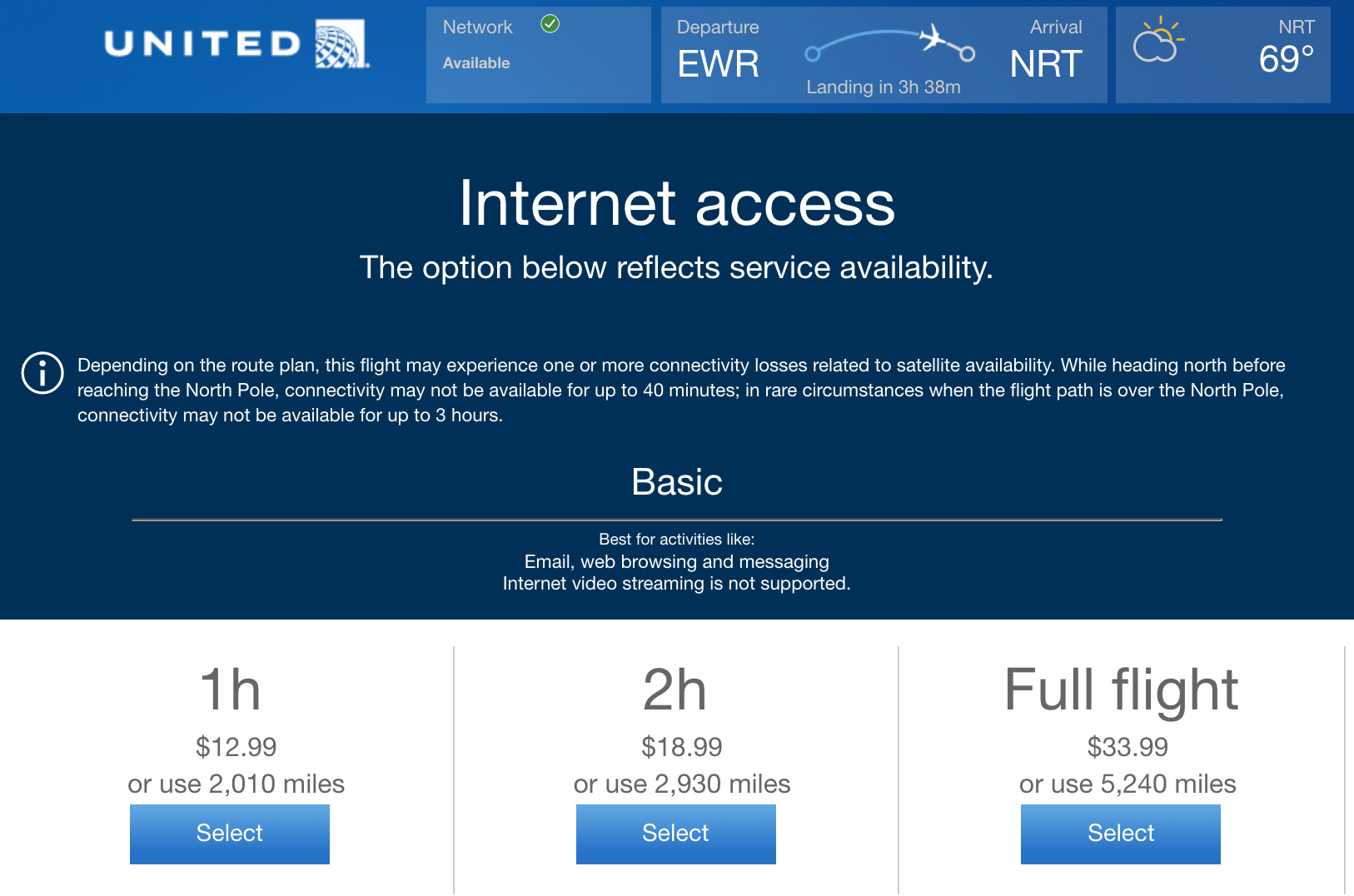 United offers Panasonic Wi-Fi on its 777-300ERs, which certainly works better than it used to. I was able to stay connected for much of the flight, though my speed-test attempts were not a success.