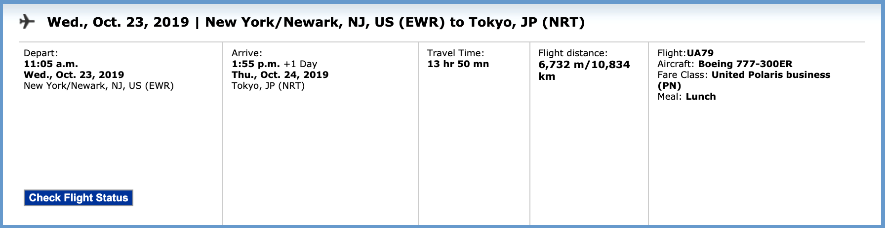 So, for this year's annual TPG Awards Polaris review flight, I booked a seat on United's largest plane on one of its longest routes, flying nonstop from Newark (EWR) to Tokyo Narita (NRT) just before Halloween. It also happened to fit in very nicely as the starting point for a group trip to Japan.