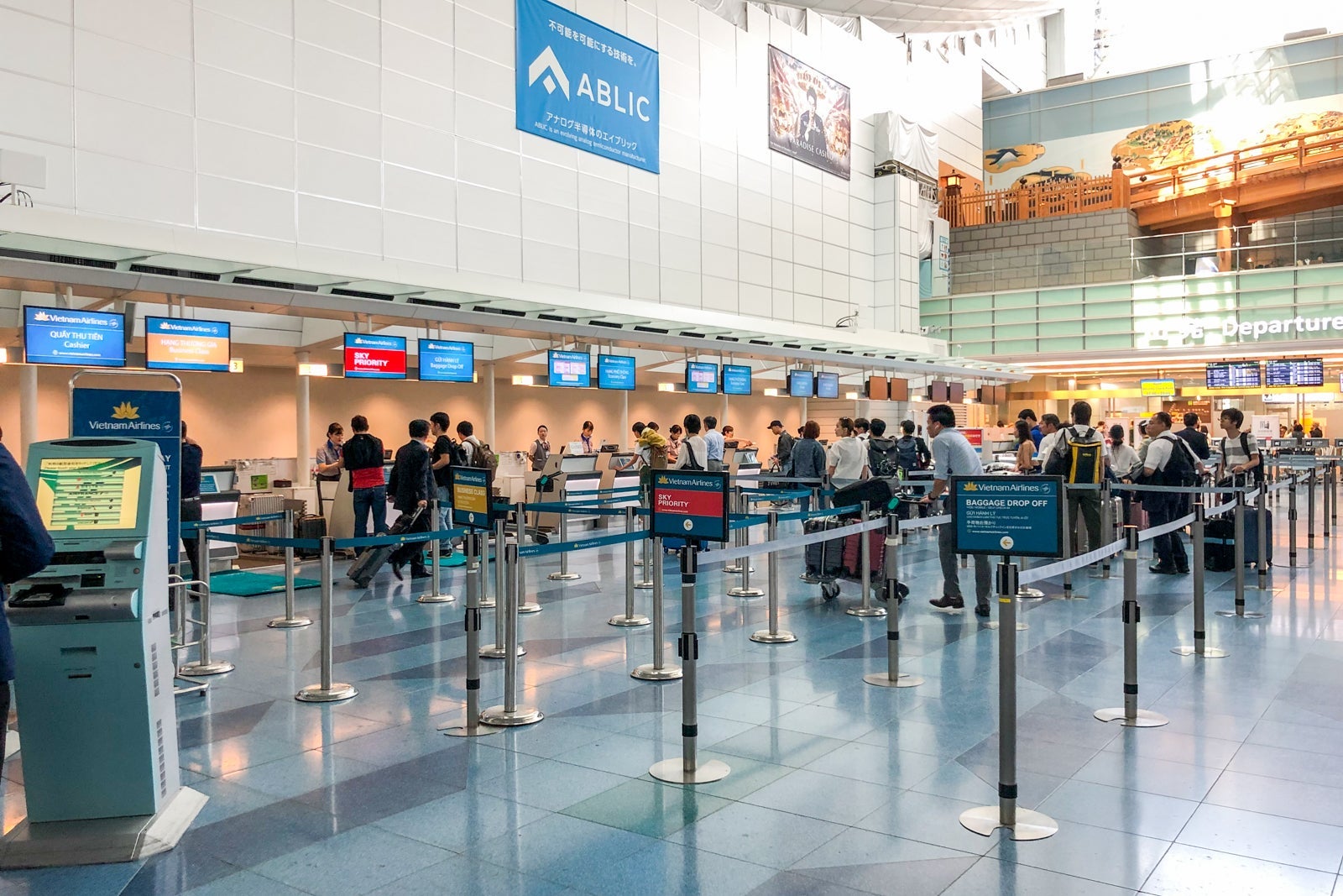 I started my journey at Tokyo's Haneda airport (HND), where Vietnam Airlines operates two flights a day to its base in Hanoi (HAN). I arrived at the airport about three hours prior to the scheduled departure time, and there were only a few passengers at the check-in queues for economy and business class.