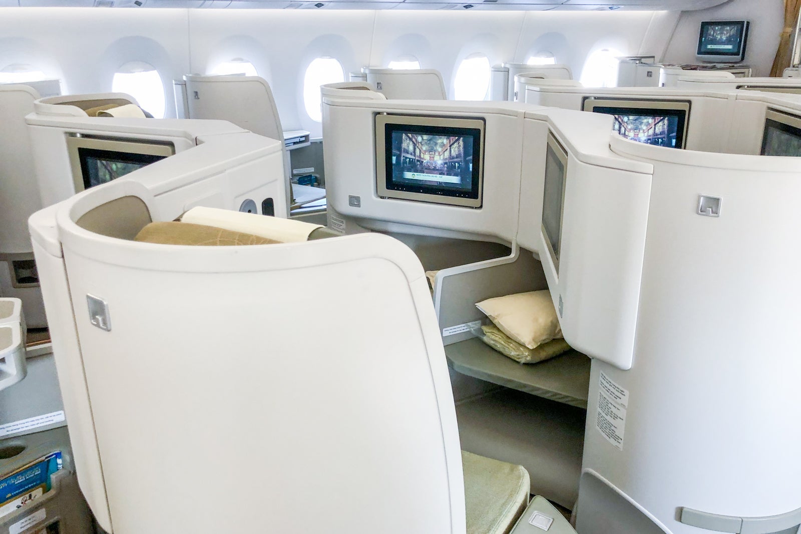You can expect virtually the same business-class product across Vietnam's A350 and 787 aircraft, with the exception of some A350s featuring different seats, arranged in a staggered 1-2-1 configuration, which TPG reviewed in 2016.