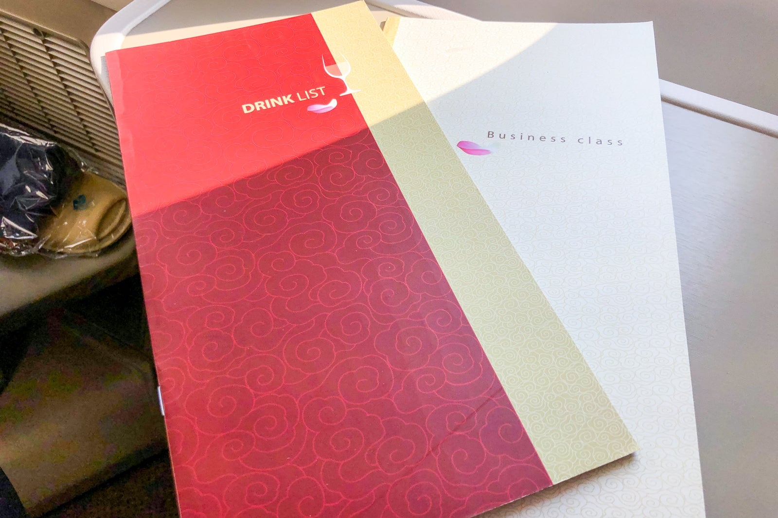 Just after boarding, I went to the lavatory to change into something more comfortable for the flight. By the time I'd returned to my seat, the cabin crew had left a cool towel at my seat along with food and beverage menus.