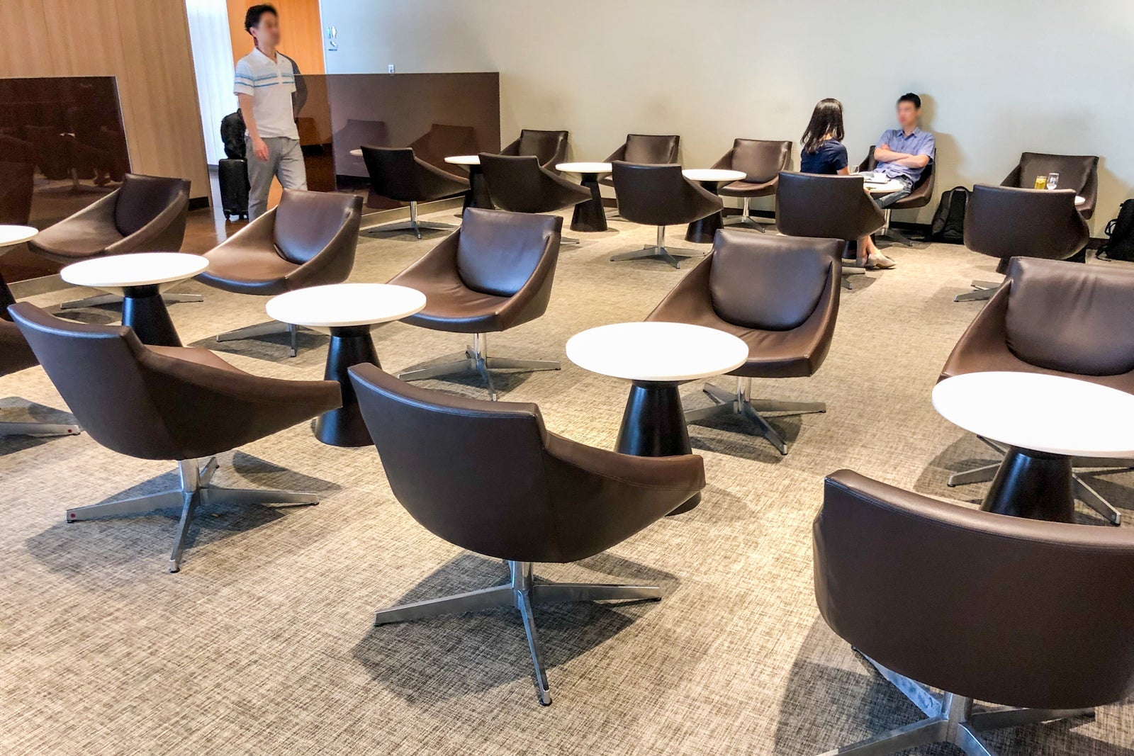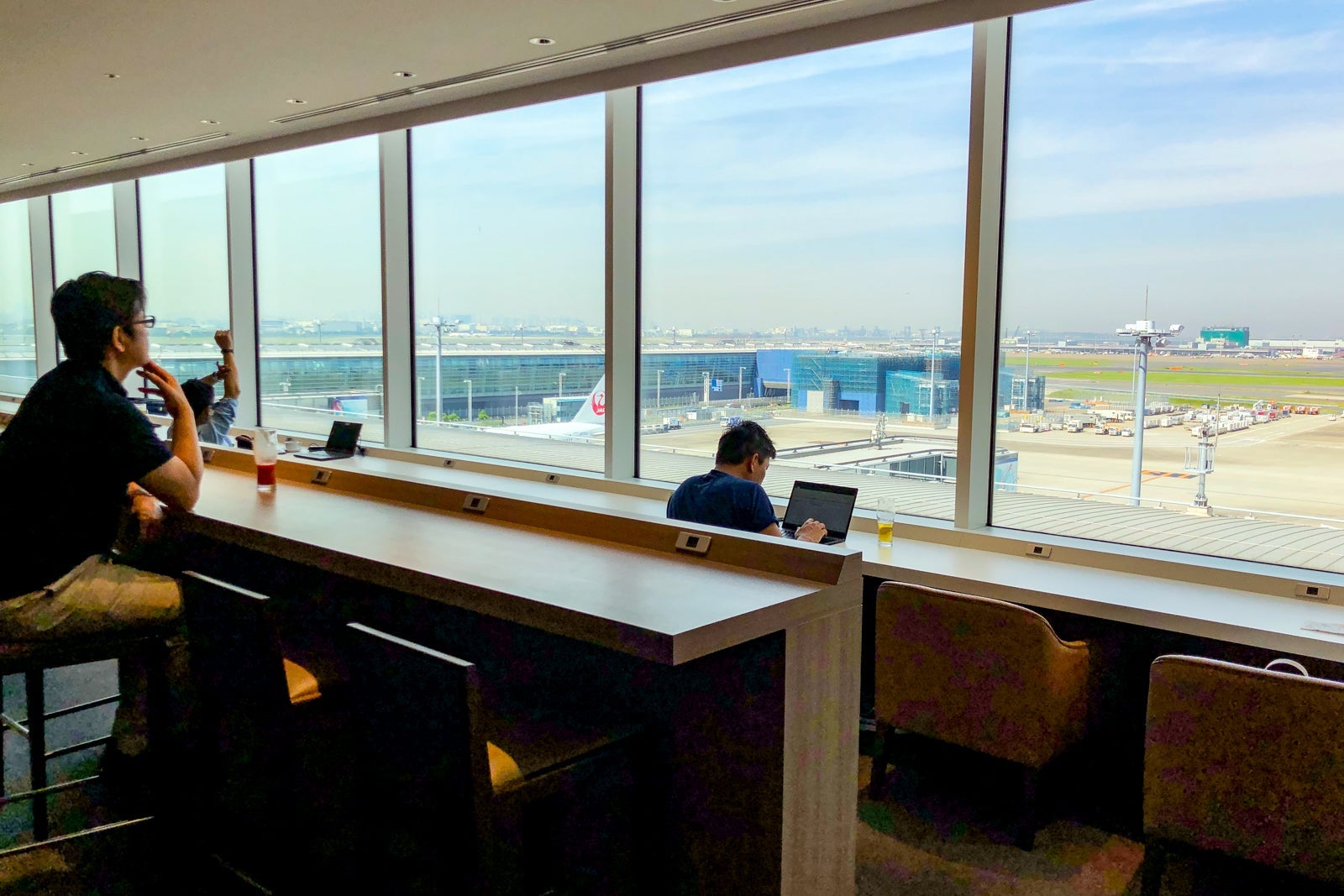 The lounge has multiple types of seats -- office chairs, barstools, cushy armchairs and more. My favorite seats offered great runway views and a power outlet at each seat.