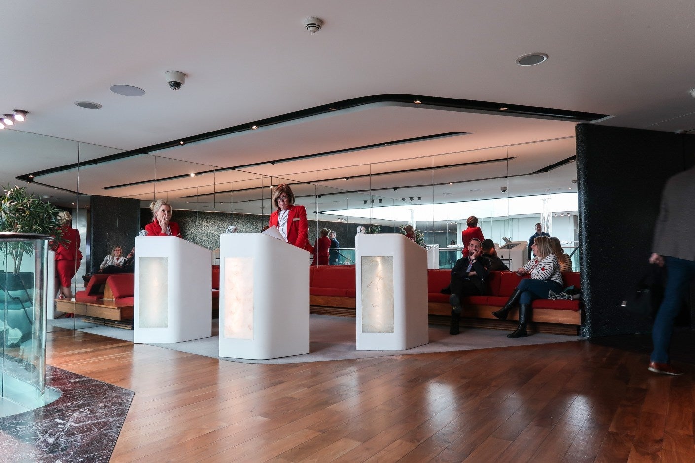 As we pulled round the roundabout at the top of the driveway, the wonderful Charlene, dressed in glorious Virgin red, was waiting at the door. She opened the door to the car and welcomed me to the Upper Class wing. Two gents popped the trunk and took my bags straight to the check-in desk.