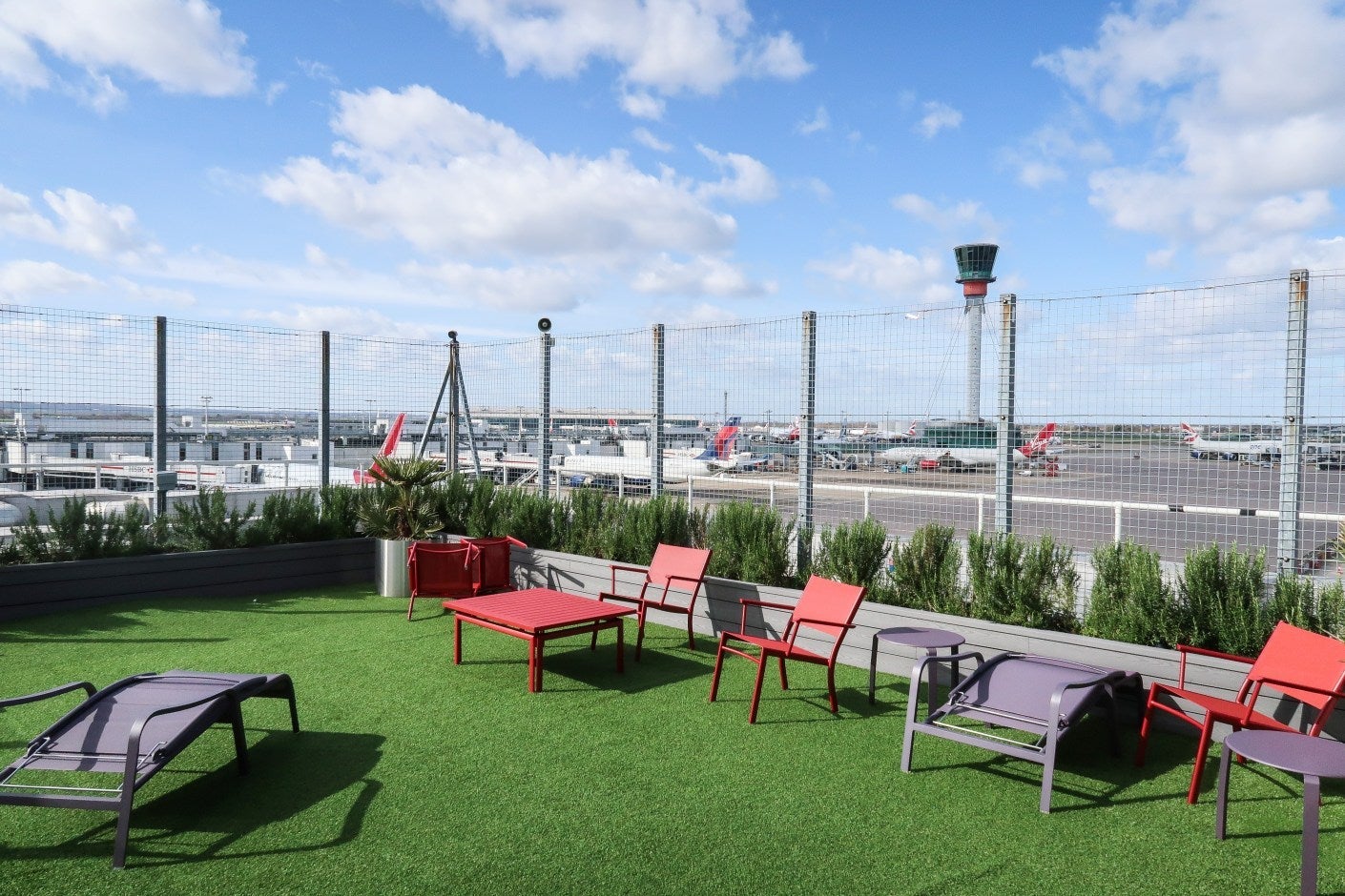 Amenities abounded in this lounge: a spa, a pool table and, most incredibly, a roof terrace looking out over the Terminal 3 apron and the Heathrow runways.