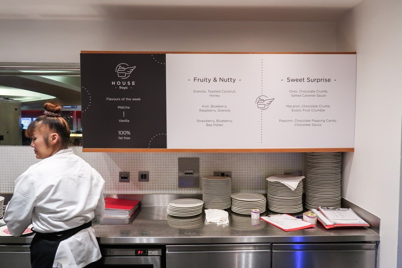 The food and beverage options were also brilliant. There was a bar, a deli counter with salads and smoked salmon, frozen yogurt and at-seat dining.