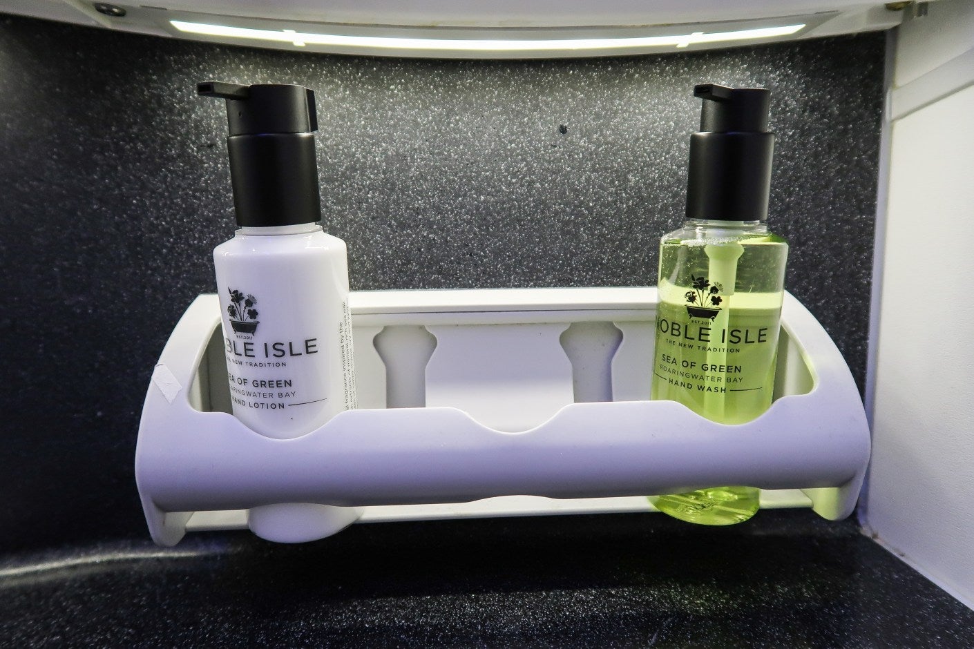 There were three lavatories at the rear of Upper Class. The one closest to my seat was a decent size and had Noble Isle hand wash and hand lotion without any other indication of it being the premium cabin's lav.