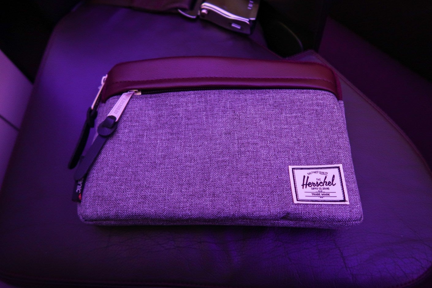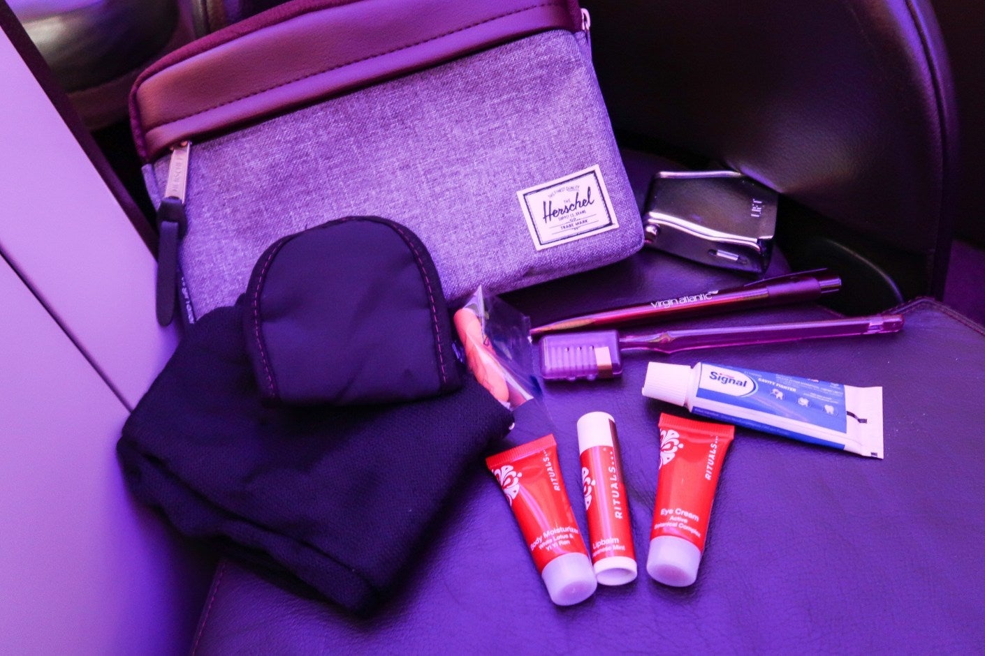 The amenity kit bag was made by Hershel and contained the usual items, including socks, eye mask, Virgin Atlantic-branded pen, earplugs, toothbrush, toothpaste and Rituals-branded body moisturizer, lip balm and eye cream. None of the items stood out, but they were all handy on this relatively short flight.