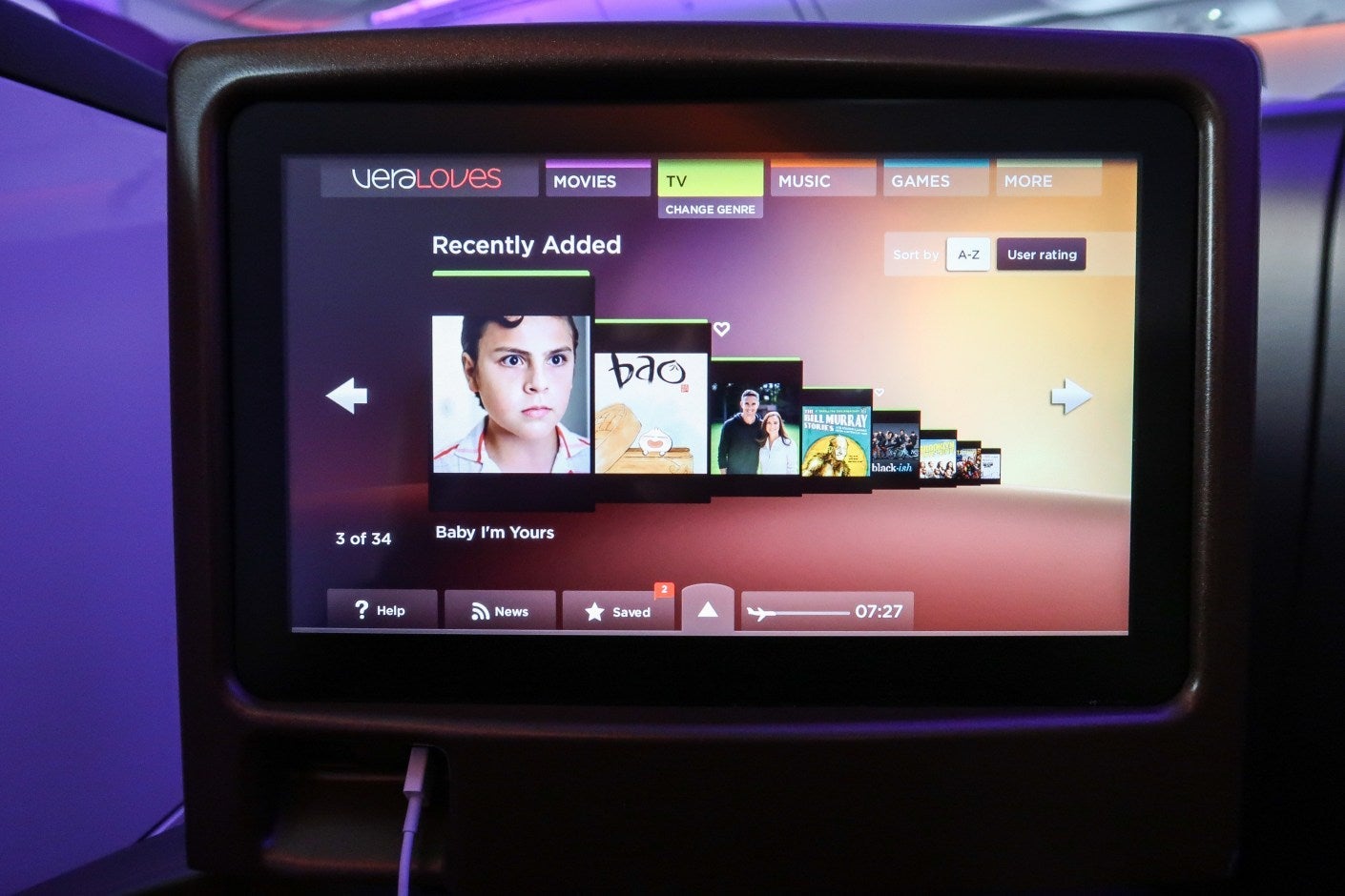 While the screen itself was small, its contents were not. There was a wide selection of movies and TV on demand, along with a selection of music, a moving map and mediocre noise-canceling headphones.