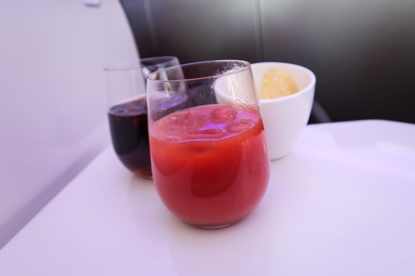 I went for a tomato juice and Diet Coke, asking for the tomato juice to be extra spicy. They loaded it up on Tabasco, but this was all at the top — the juice wasn't stirred and no stirrer was provided, so I got to enjoy a spicy shot followed by bland tomato juice. A shame, and such an easy fix.