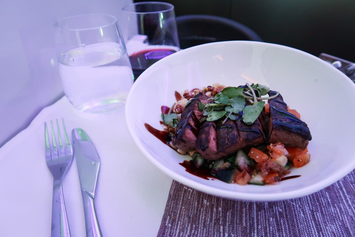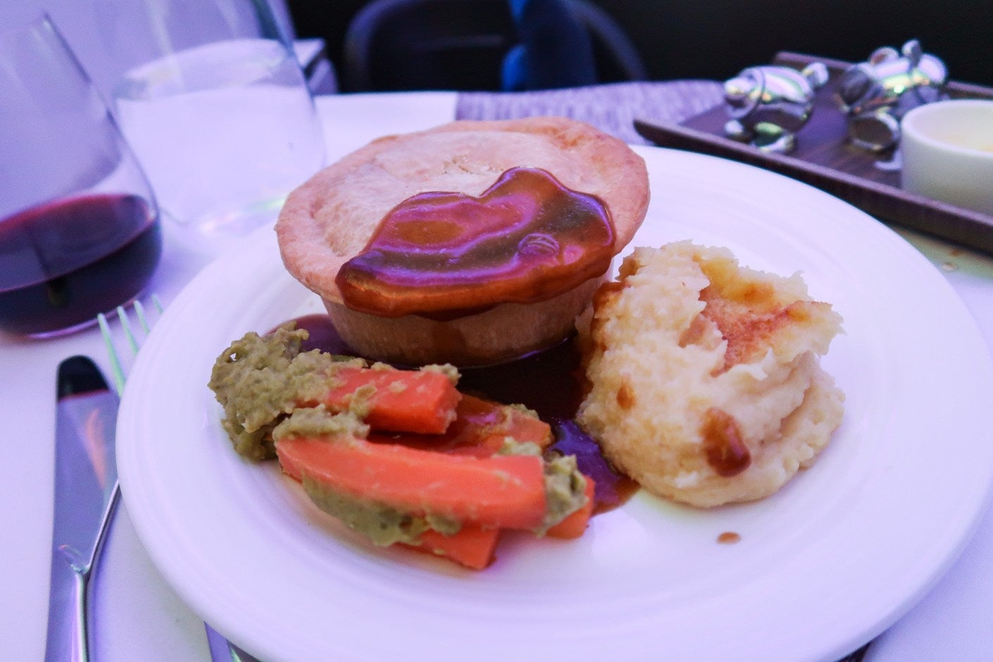 The wagyu beef was not as I'd expected. It was served cold and was tough with a butchery smell. When I asked the crew if there were any chance of a change, they took away the beef right away and offered me the hot chicken or salmon. Within a couple of minutes, the dishes were swapped, and I had a steaming hot chicken-and-leek pie and mash in front of me. There was not a moment of hesitation from the crew.
