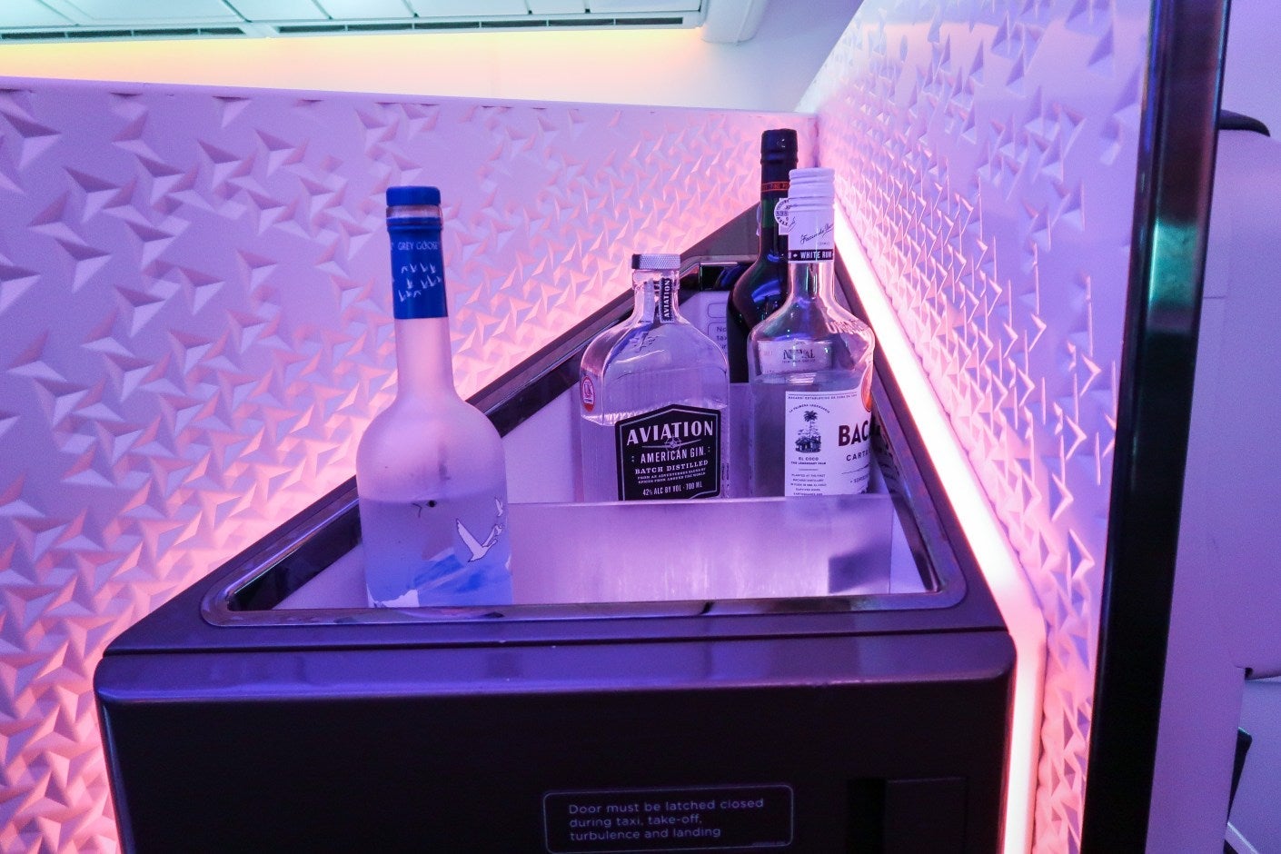 At the rear of the cabin was a bar, for use of Upper Class passengers during the flight. It was stocked with some snacks and drinks including a hefty bottle of Grey Goose vodka!