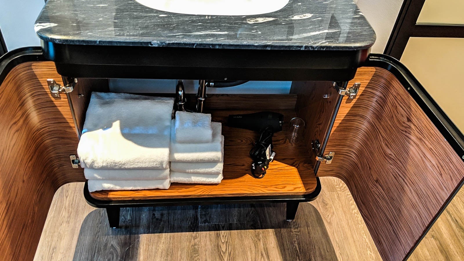 Word to the wise: If you're wondering where your towels are, they're lurking under the sink.
