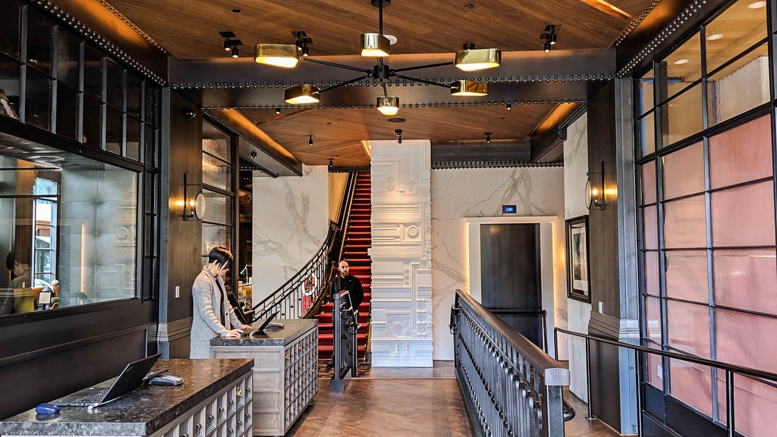 While there wasn't a lot of standing room in the foyer and check-in area itself, I also had the option of snagging a seat in the Shag Room, the small lounge adjacent to the lobby, and waiting for a staff member to come over and check me in directly from my seat. My check-in was both speedy and seamless, with just two other guests ahead of me in line, so I waited.