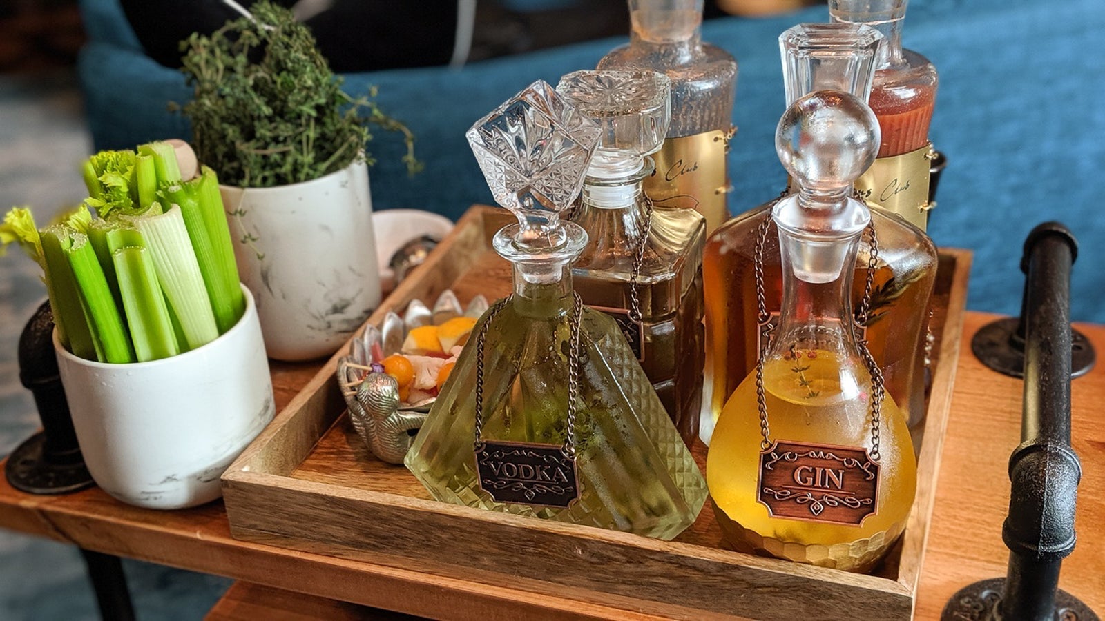 The staff rolled out a custom Bloody Mary bar cart, and I got to select from my choice of infused liquors and garnishes.