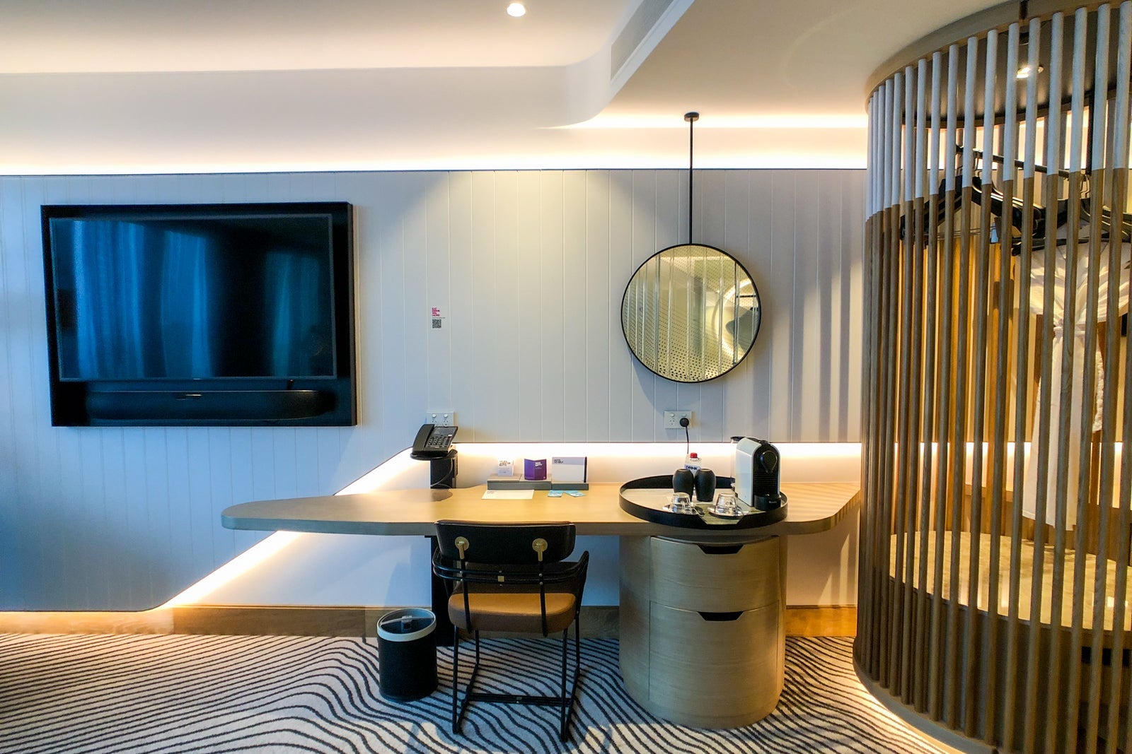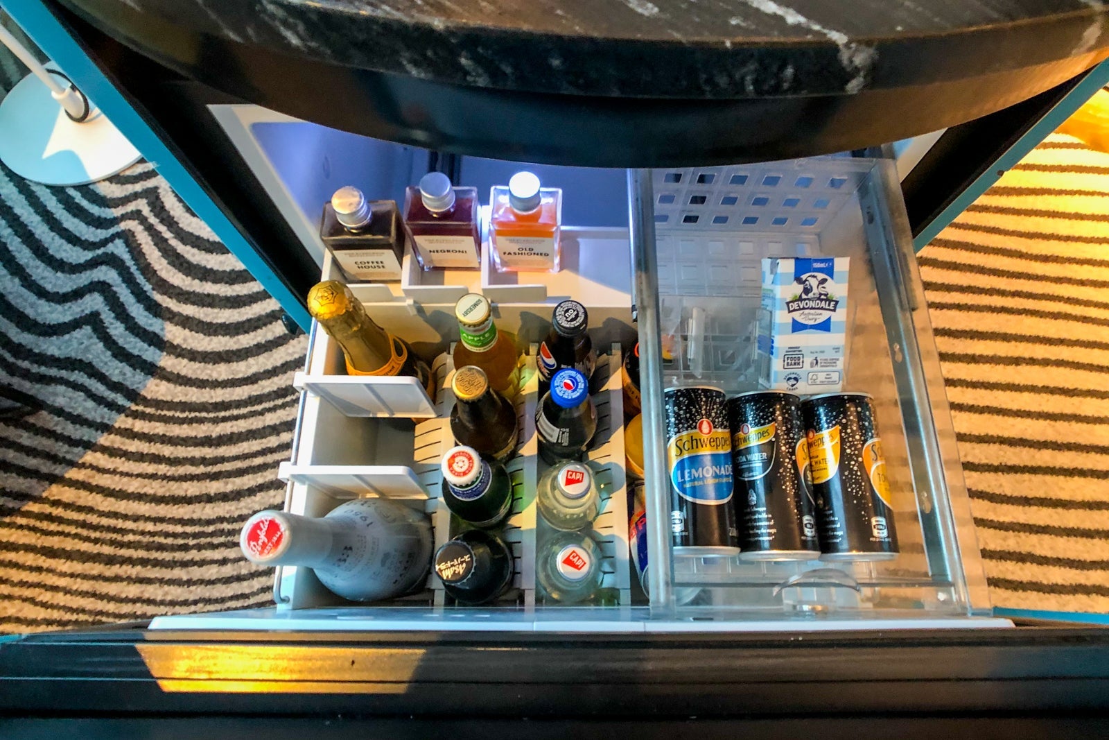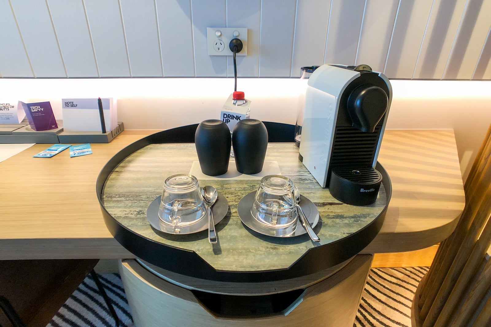 The massive minibar was stocked with goodies like Eveleigh Bottling Co. pre-made cocktails and Penfold's Cabernet-Shiraz blend. But it wasn't all play. There was a sizable work table with plugs galore, a comfortable desk chair and a Breville espresso machine for caffeinating up in the morning.