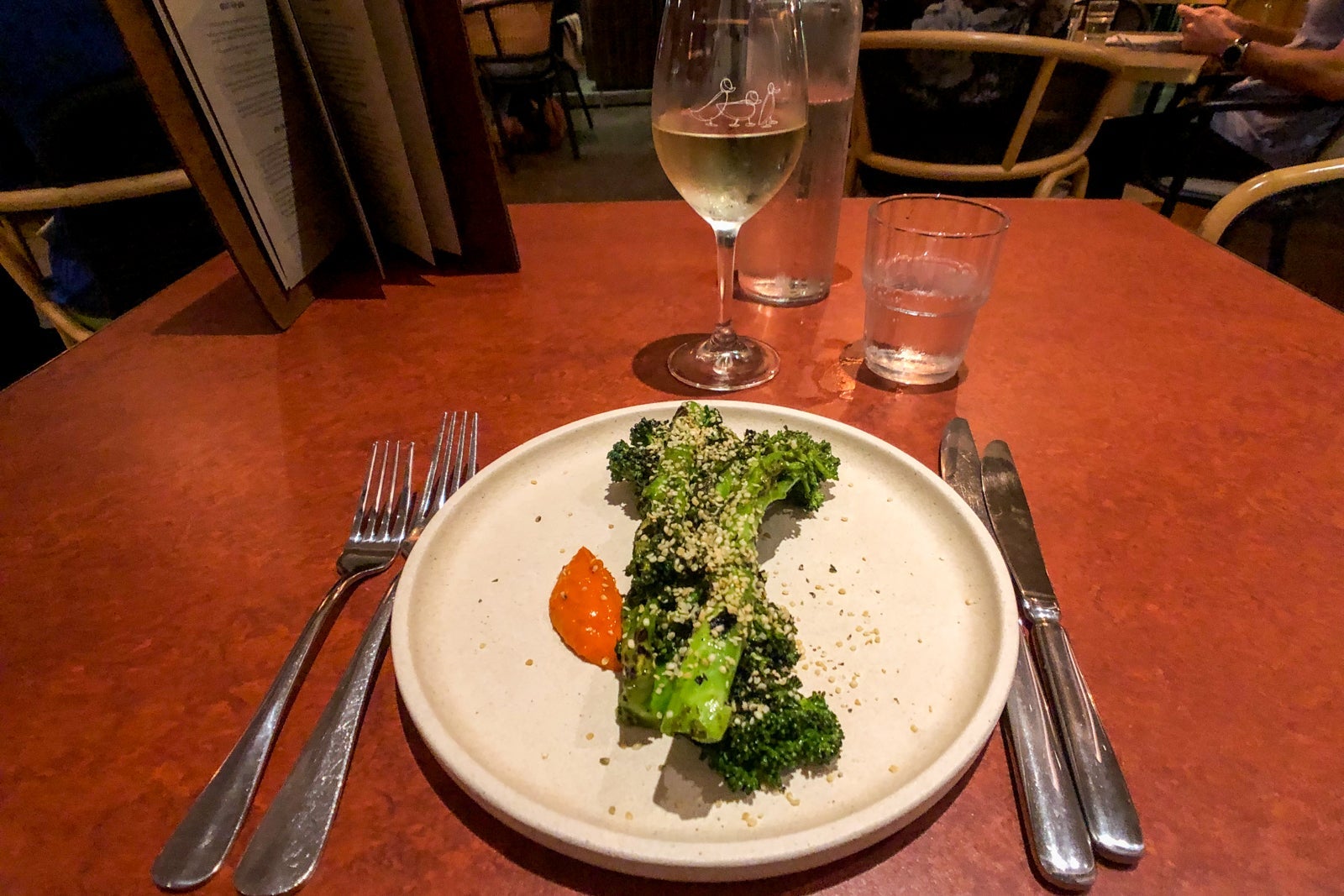 Come with friends since many plates are meant for sharing, though I managed to polish off a heaping platter of grilled Moreton Bay bugs (a type of slipper lobster) with umami XO sauce, lime and charred greens (AU$55, or $41) as well as a side of roasted broccolini with confit chili, gremolata and toasted hemp seeds (AU$13, or $10), pairing the food with a glass of on-tap Chenin Blanc-Sauvignon Blanc (AU$14, or $10.50) from Blind Corner in Western Australia's Margaret River region. More adventurous palates might even venture to try the kangaroo tartare with pickled quandong, Davidson's plum mayo, mountain pepper and olive brik pastry (AU$25, or $18.50).