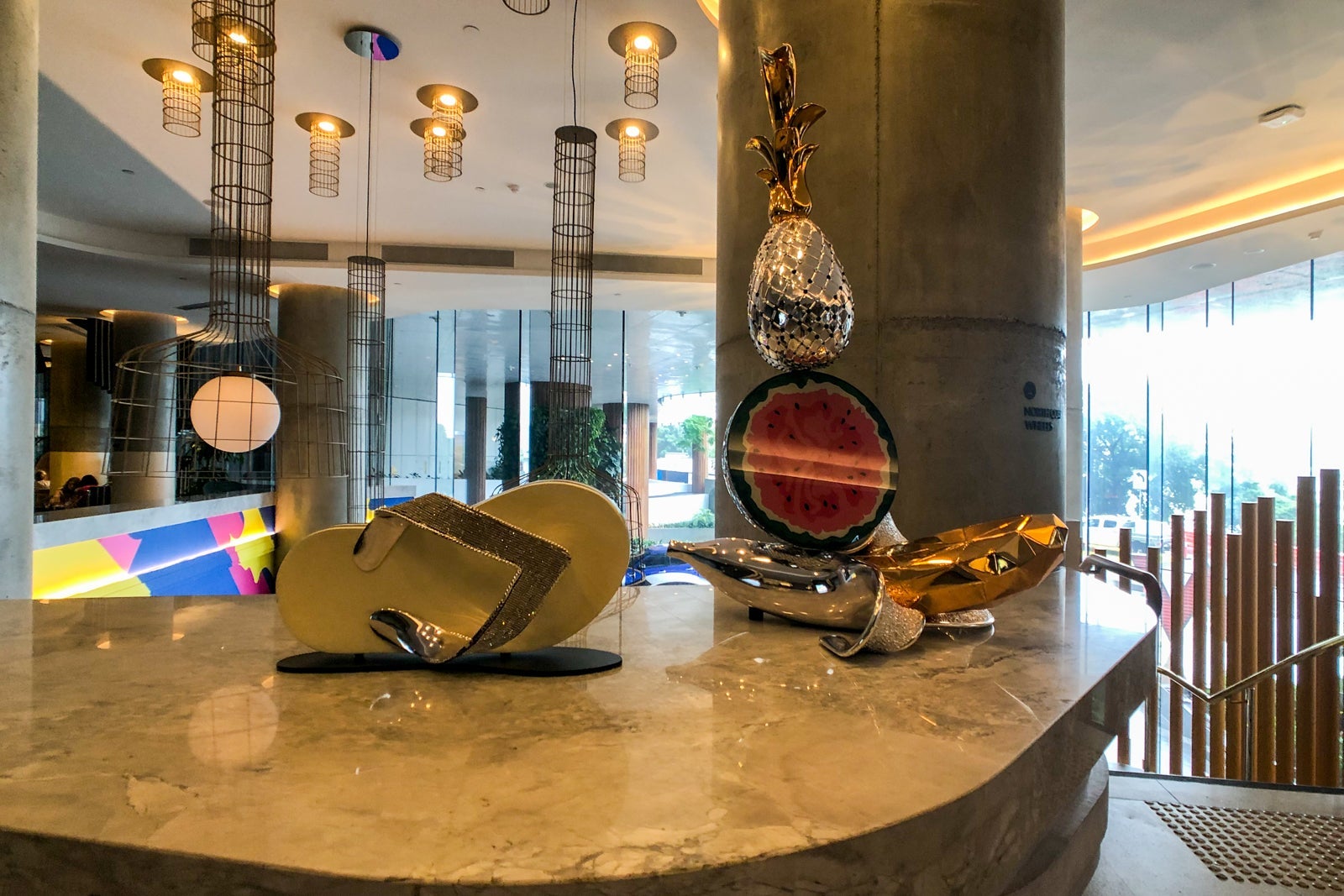 In the public areas, colorful murals by Australian artist Reko Rennie contrast with cheeky sculptures of bejeweled flip-flops and fruits. Hallway carpets with water-like whorls and opal-inspired patterns complement Warhol-like photographic prints of Australia's animals. Then there's the wall outside the Three Blue Ducks restaurant with Australian slang phrases scrawled across it. She'll be right, indeed.