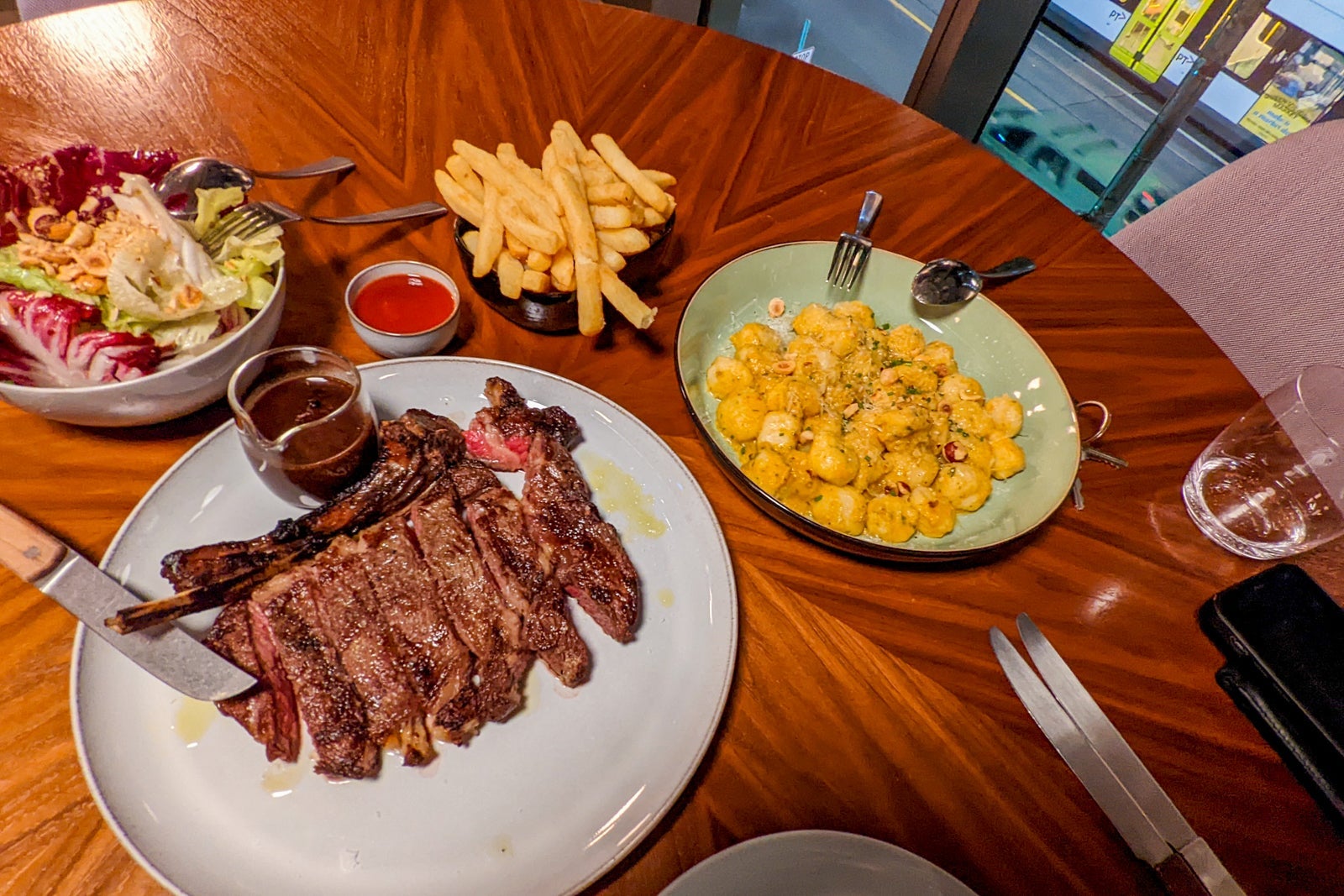 Dinner at Lollo was a more successful affair. My cousin joined me for a long-overdue catch-up and we shared a perfectly cooked and seasoned rib-eye steak ($62) and a special of cheesy gnocchi ($21).
