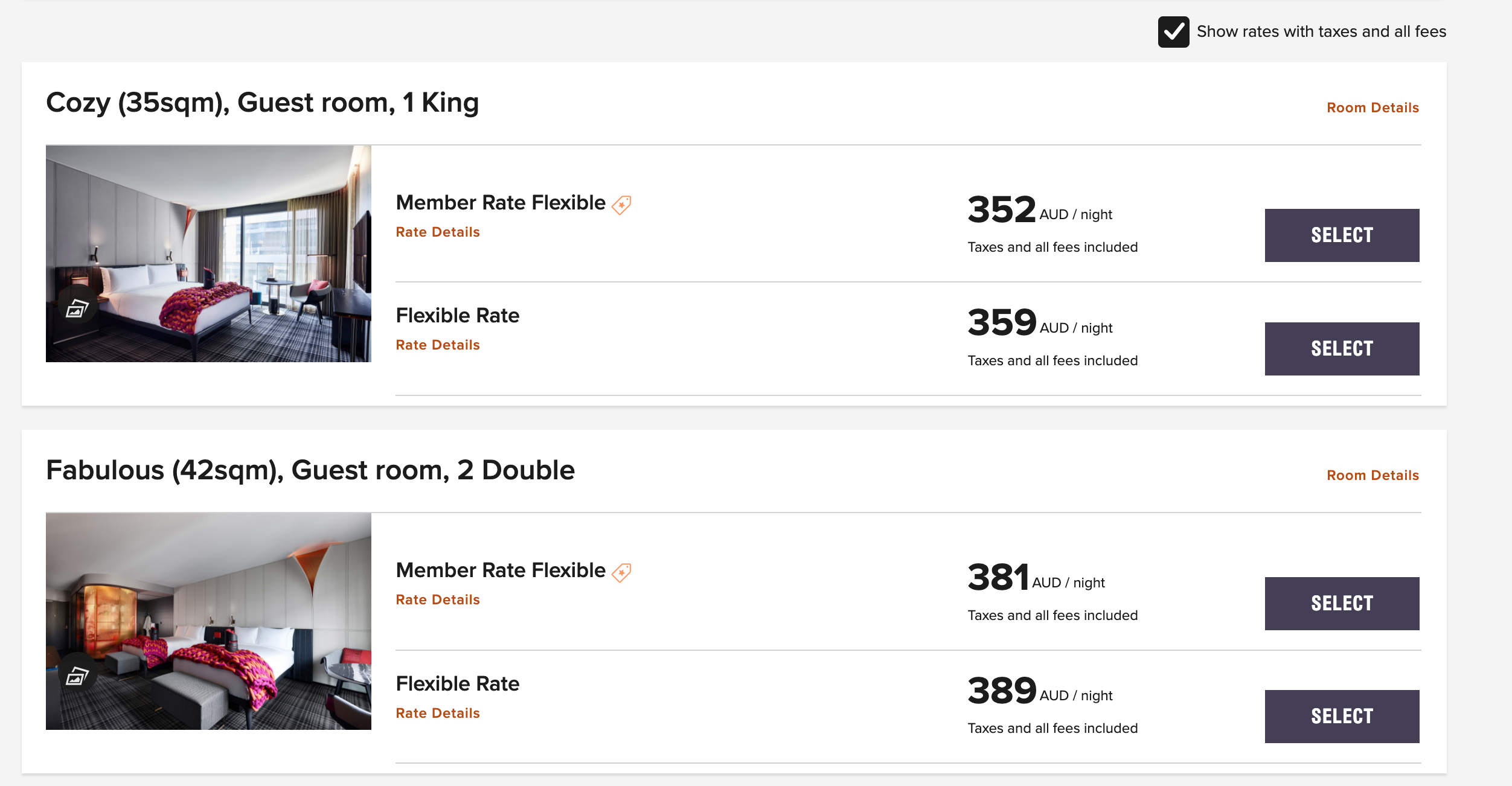 I was staying over a weekend and booking on relatively short notice, so my two-night stay was an average of AU$417 ($306) per night for the base room.