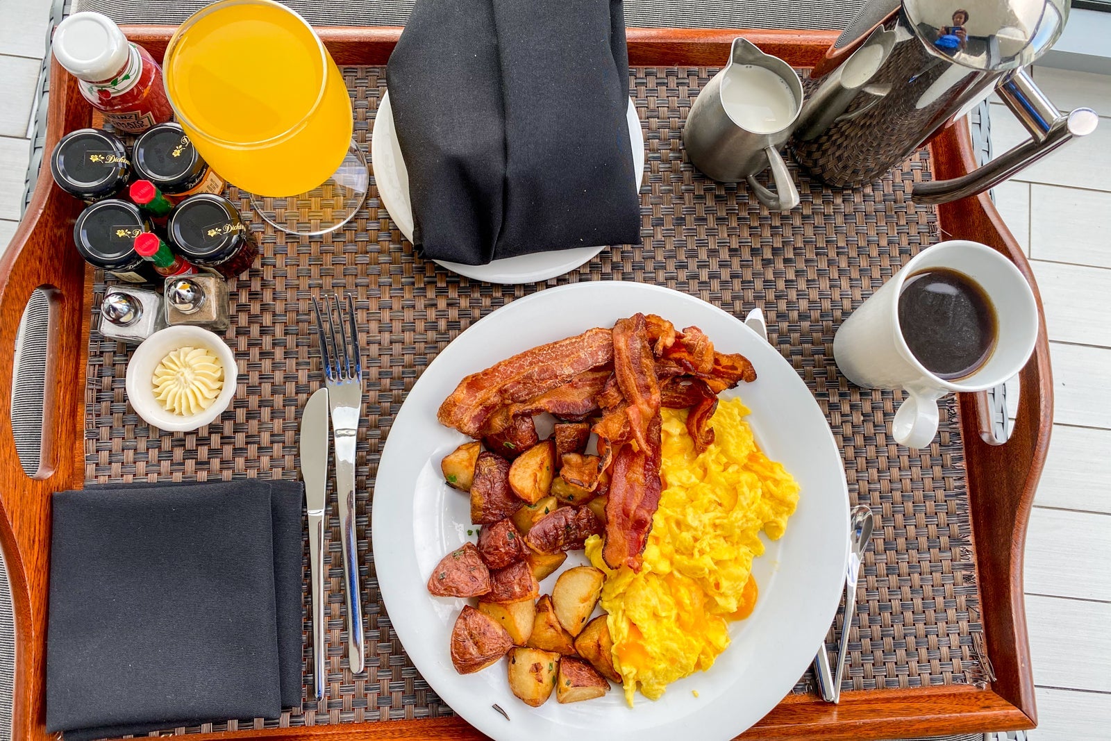 On my first morning at the hotel, I ordered breakfast through room service, opting for the traditional breakfast spread. My food took about an hour to arrive, but I was more disappointed with the offering.
