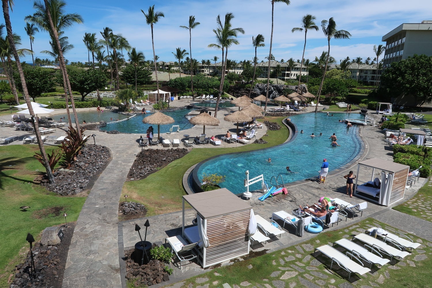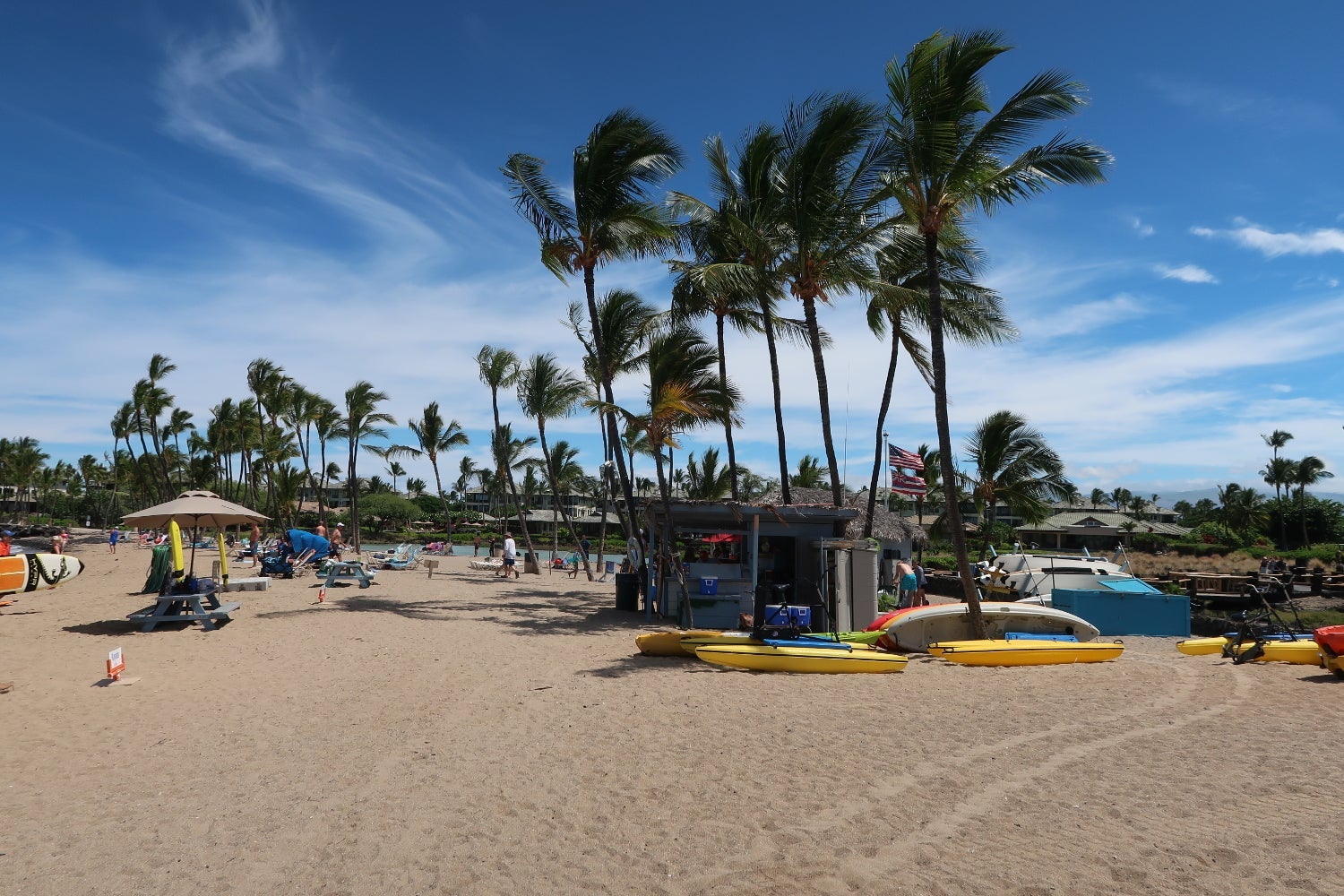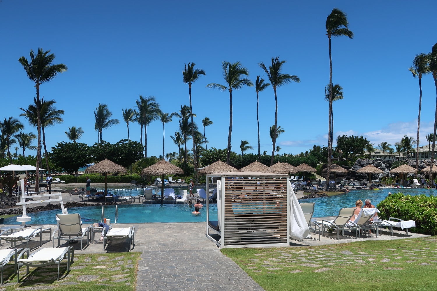 Although I liked that the property was within walking distance of off-resort shops and restaurants and found the walking areas between the resort and beach enjoyable, the staff members weren't particularly friendly, and it was difficult to find a shaded chair at the pool or beach in the middle of the day. Based on my experience, I preferred the Westin Hapuna Beach Resort, particularly the Westin's atmosphere, beach and patio furnishings, and would try a different property before returning to this Marriott.