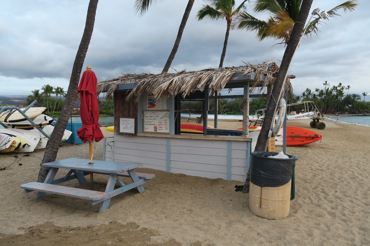 A stand on the beach sold ice cones for $3.50 each, as well as a variety of snacks and drinks.