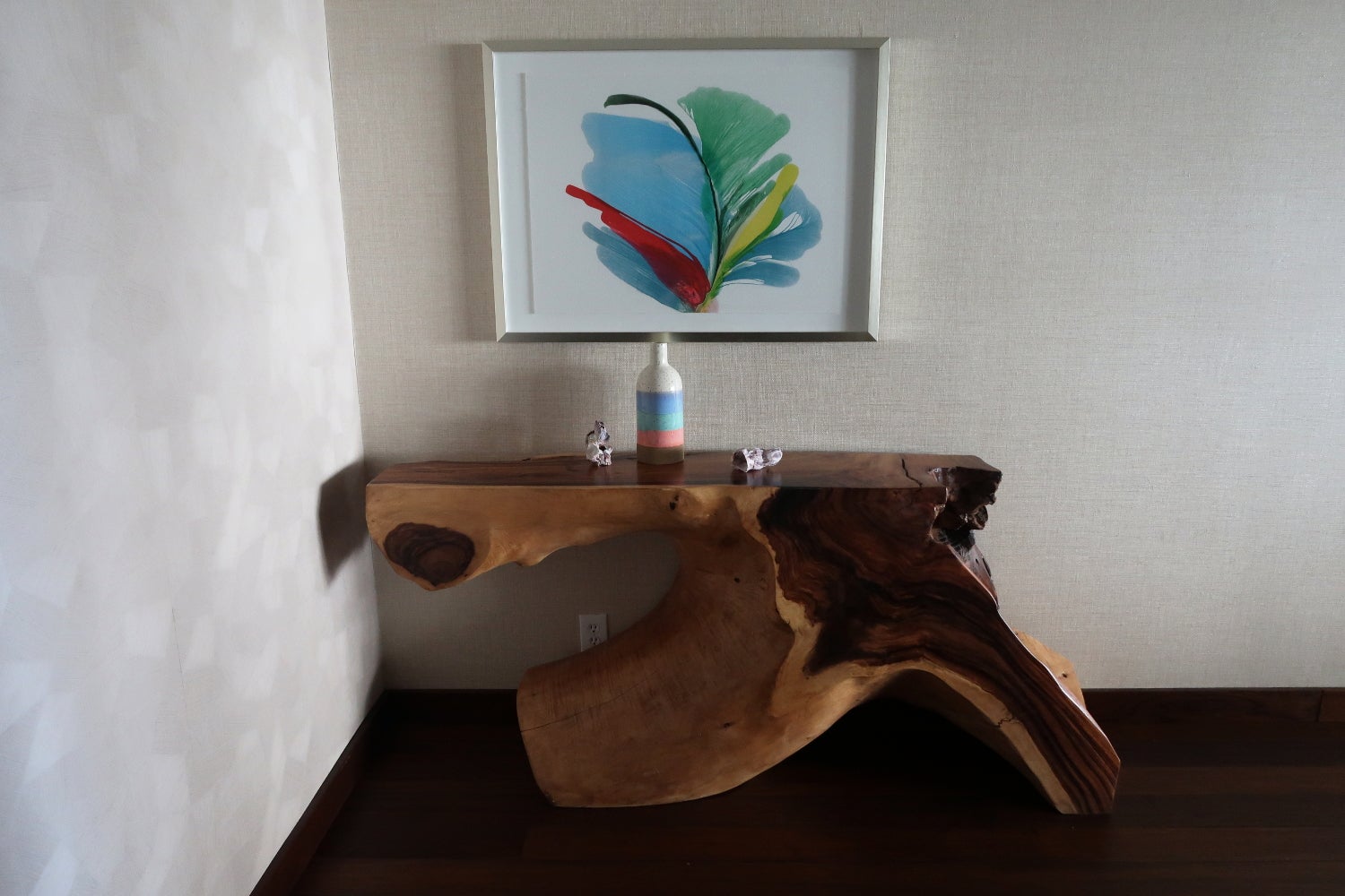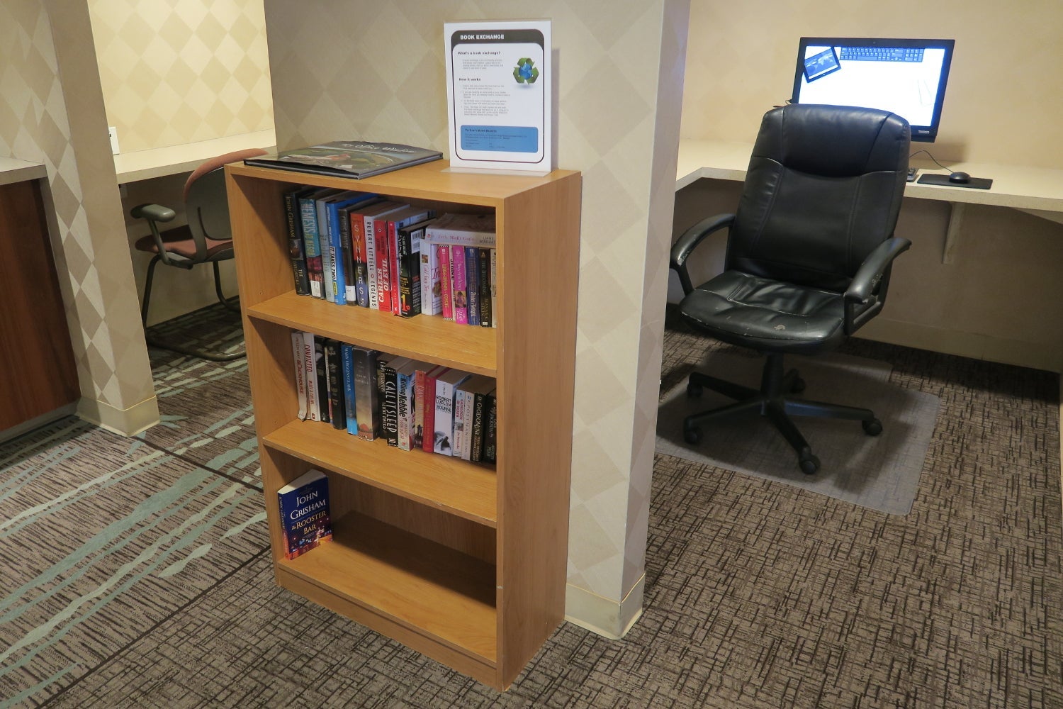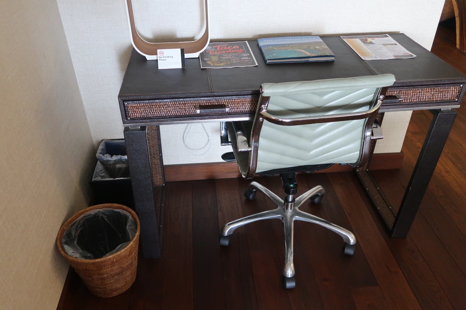 Off the living room was a nook with a working desk and a chair. The one power outlet under the desk was difficult to access.