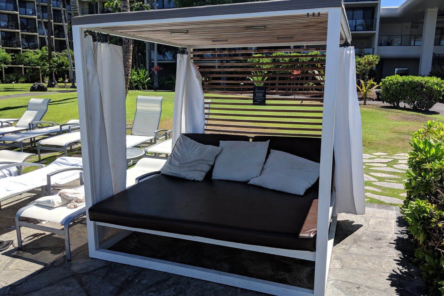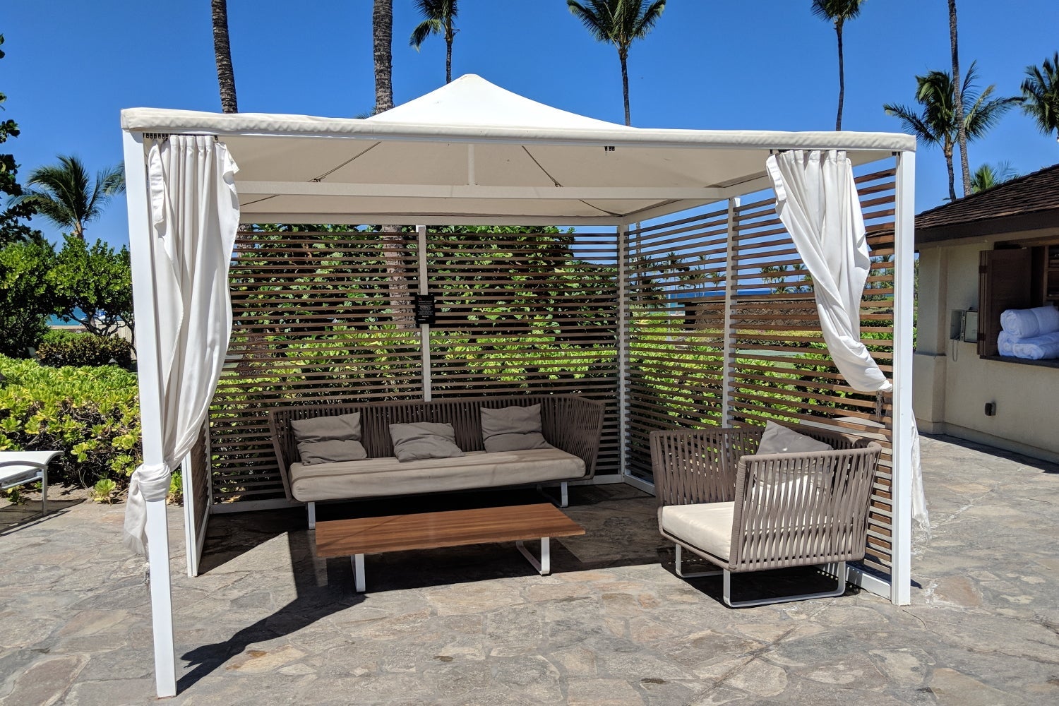 There were four cabanas and three pavilions around the pools that could be rented at the pool shack. The cabanas were $50 per day and provided seating for two, as well as two mai tai drinks.