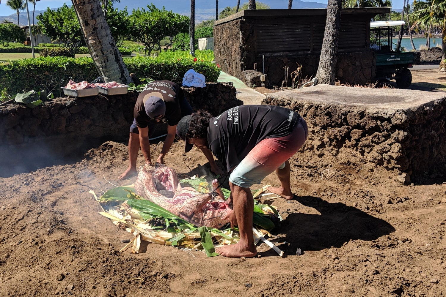 Even if you didn't attend the luau, you could attend the imu viewing at 9:30am any day a luau was being held. You got to watch the underground oven being prepared. Then, a large pig was lowered into the oven and enclosed in the oven to be slow-cooked all day until being unearthed for the luau.
